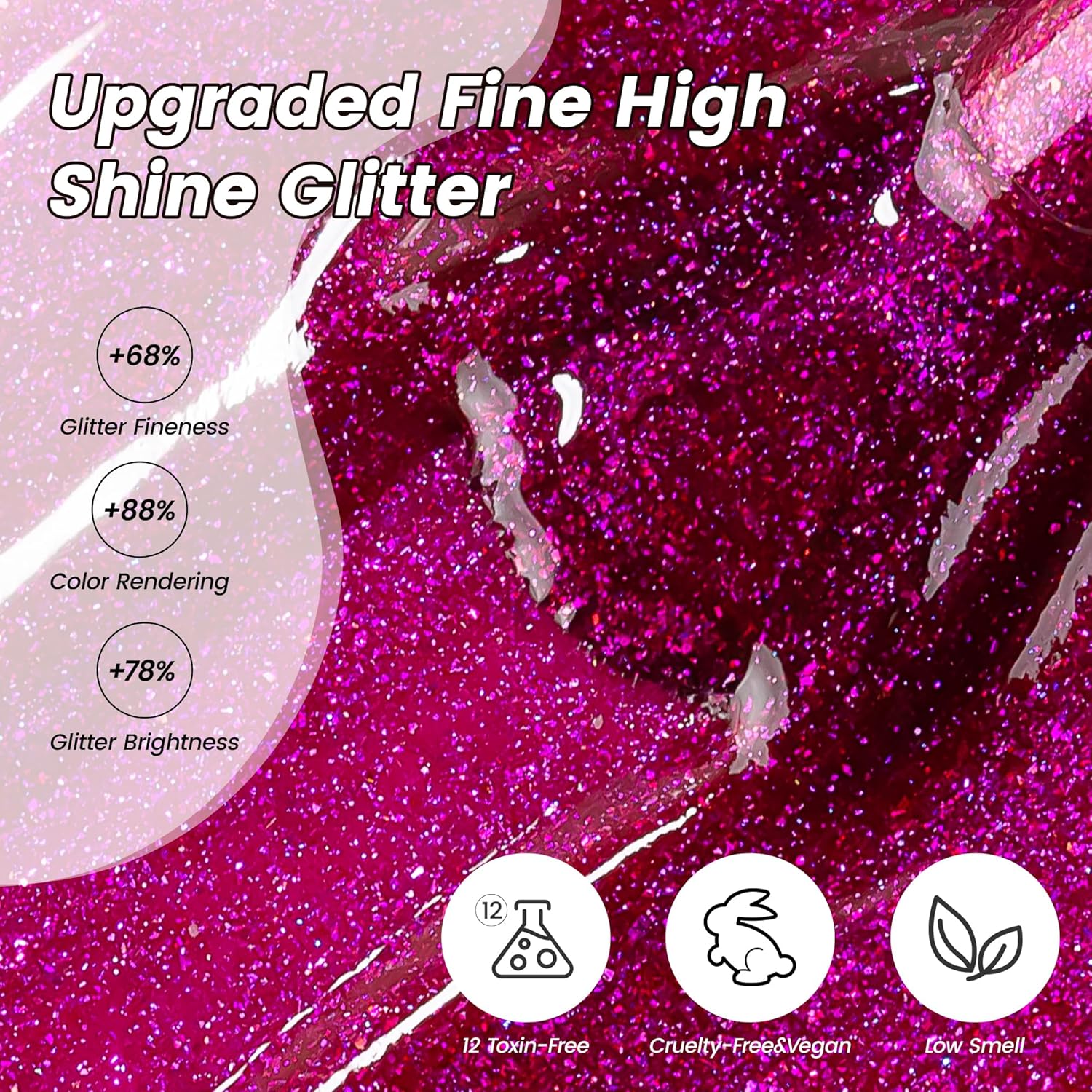 YTD Likomey Hot Pink Glitter Gel Nail Polish,15ml Shimmer Shiny Sparkly Salon Home DIY Manicure Fall Winter UV Color Varnish,SF406