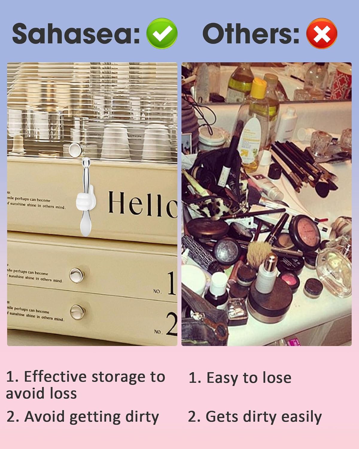 - Unique Design: The under eye metal roller ball is made of stainless steel, the eye roller is easy to clean. The stickable thumb holder allows for convenient placement on surfaces like makeup organizers, desks, walls, and more. (Please wipe it clean before attaching.)