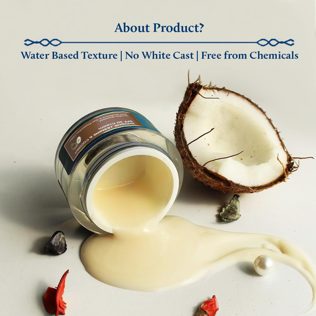 - Men's Cream for Daily use: It is an ideal oil free Spf moisturizer for daily use as it is enriched with jasmine & coconut which doubles its efficacy for sun protection. This ingredient duo further boosts and enhances your radiance.
