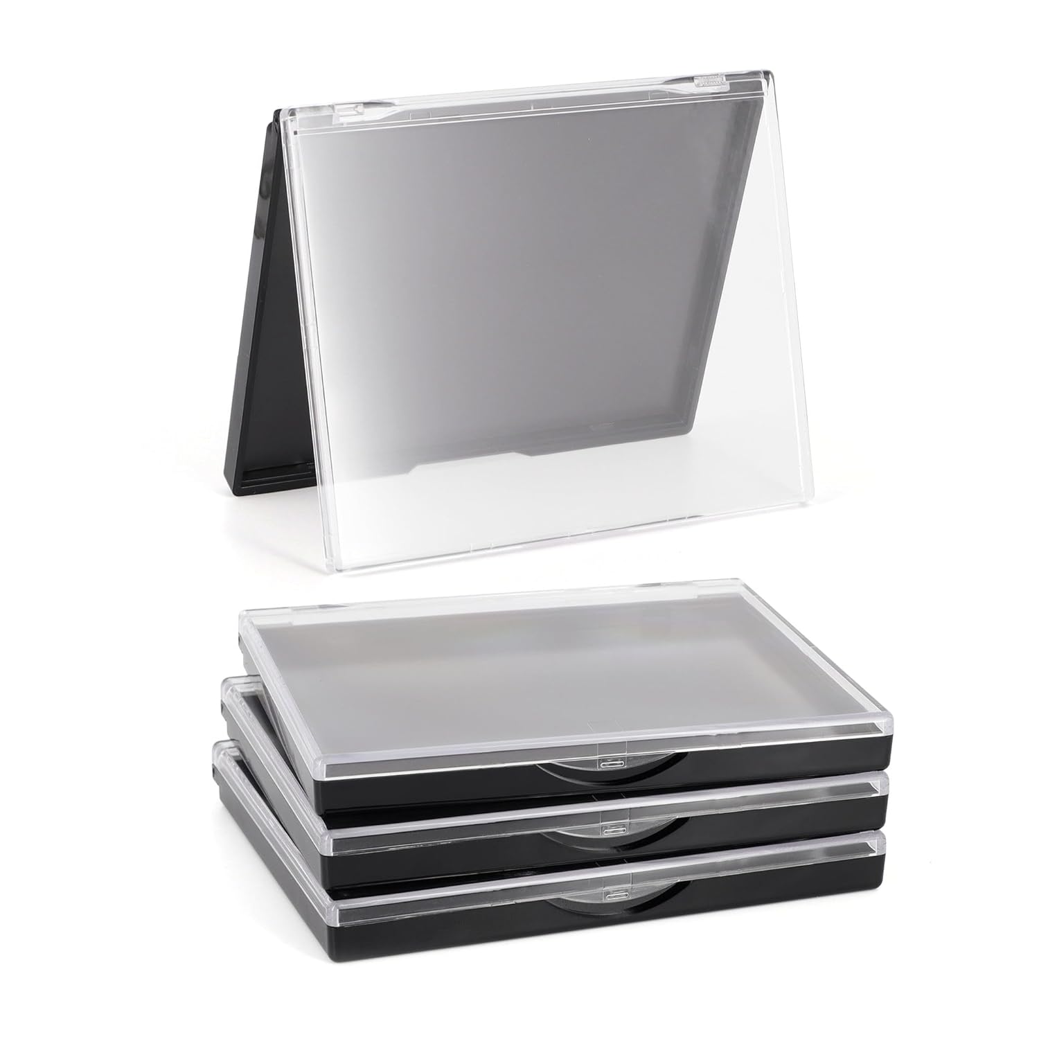 Magnetic Makeup Palette with Clear Top, 3Pack Empty Eyeshadow Pan Dispensing Storage Box with 60Pcs Adhesive Metal Stickers for DIY Cosmetics Lipstick Blush Powder-4.8" x 4"Palette