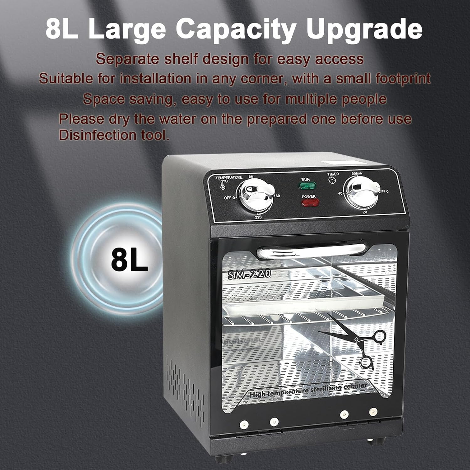 Nail Tool Sterilizer with Timer 8L Multifunctional High Temperature Dry Box Stainless Steel with 1 Stainless Tray for Nail Tools, Tweezers, Other Metal Equipment