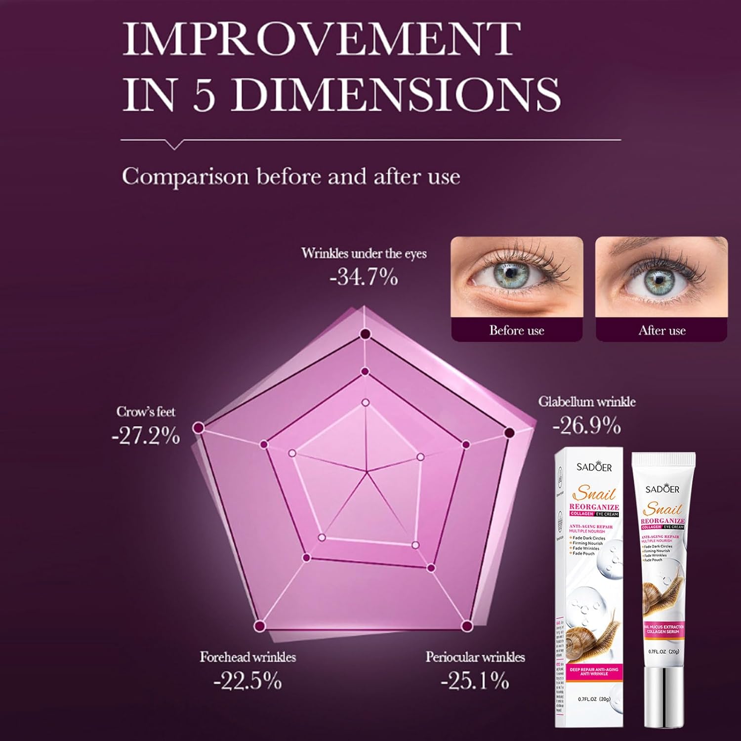 - 【Make the Skin Around the Eyes Elastic】:Our eye cream contains snail secretion filtrate and zinc hydrolyzed collagen,which provides powerful nourishment,reduces the appearance of wrinkles, tightens and moisturizes dry and aging skin, and makes the skin around the eyes elastic.