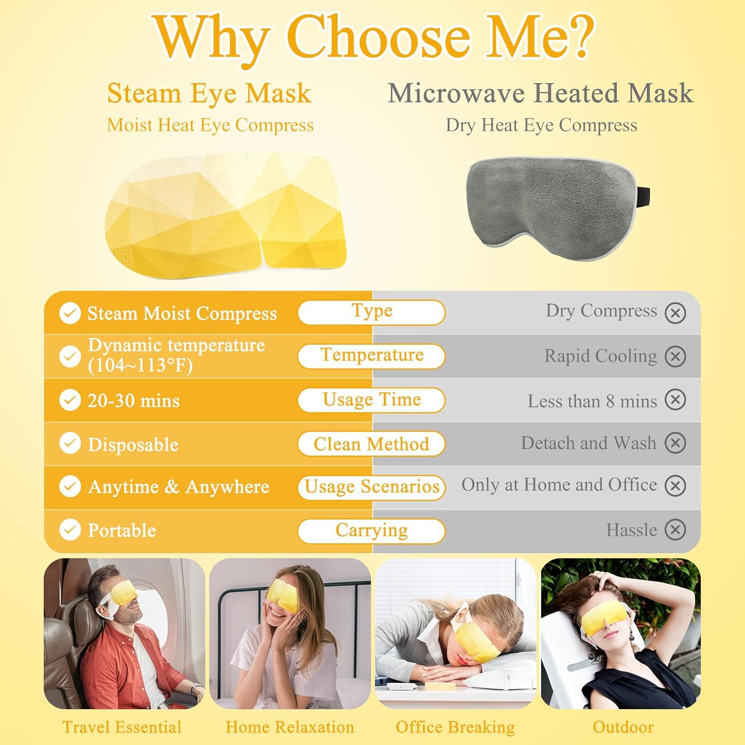 - Suitable for Various Occasions: This steam eye mask can be used for rest at home to help unwind after a long day and sleep better, nap in the office to relax and refresh eyes, for yoga meditation and for business trips. It is also a great travel must-have and spa gifts for women.