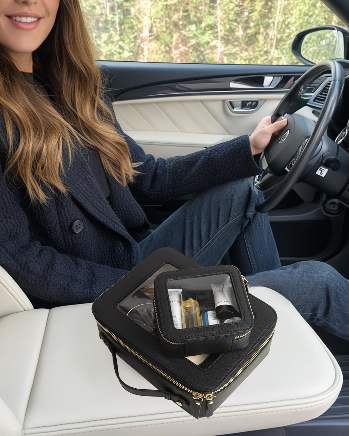 • Clear Design: Our clear toiletry bag set is sleek and minimalistic look for your makeup accessories collection. And is designed with a clear PVC window,all items are clear at a glance, and you can quickly choose the cosmetics you need. Large: 9.44“ x 6.1” x 2.7”, Mini: 5'' x 4.7'' x 2''