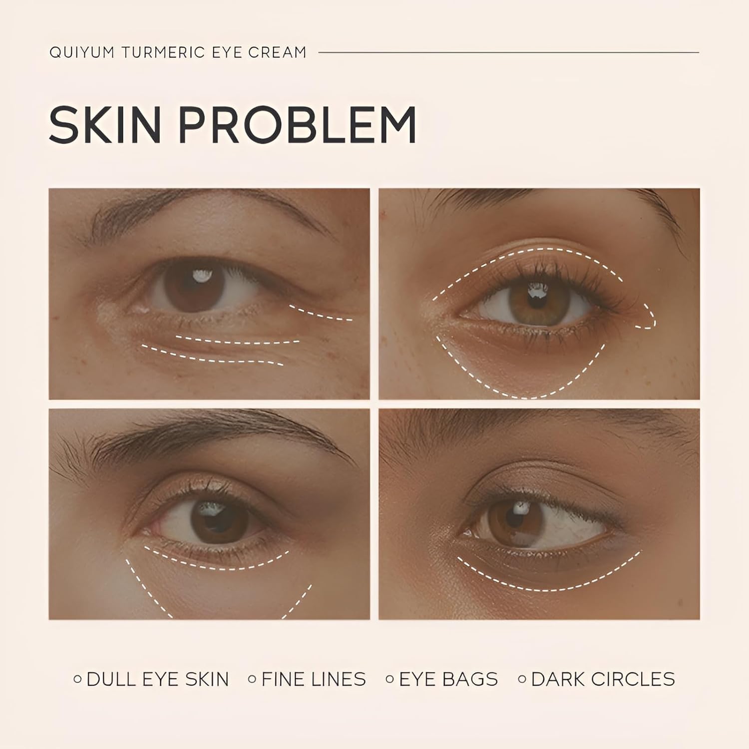 - 【Dark Circle & Puffiness Treatment】Quiyum Turmeric Eye Cream combines vitamin C and natural turmeric powder to brighten the delicate skin around your eyes, reducing dullness and fading dark circles. Quiyum Anti Aging Eye Cream helps delay signs of aging, enriched with vitamin E and plant-derived squalane for deep moisturization, reducing fine lines and enhancing elasticity.