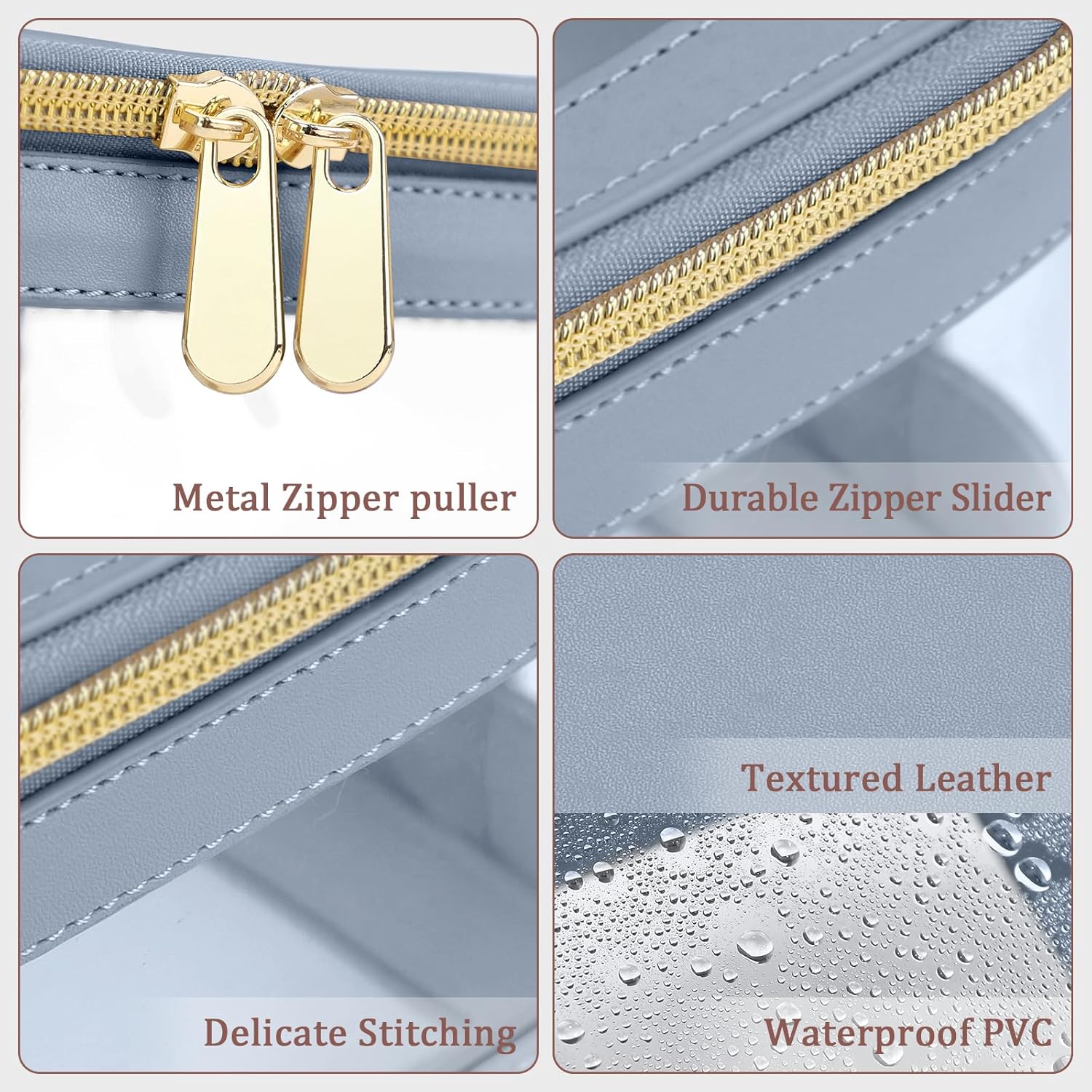 Clear Travel Makeup Brush Holder, Leather Makeup Brush Toiletry Bag, Portable Cosmetic Brush Case, Transparent Waterproof Makeup Brush Storage Bag, Blue
