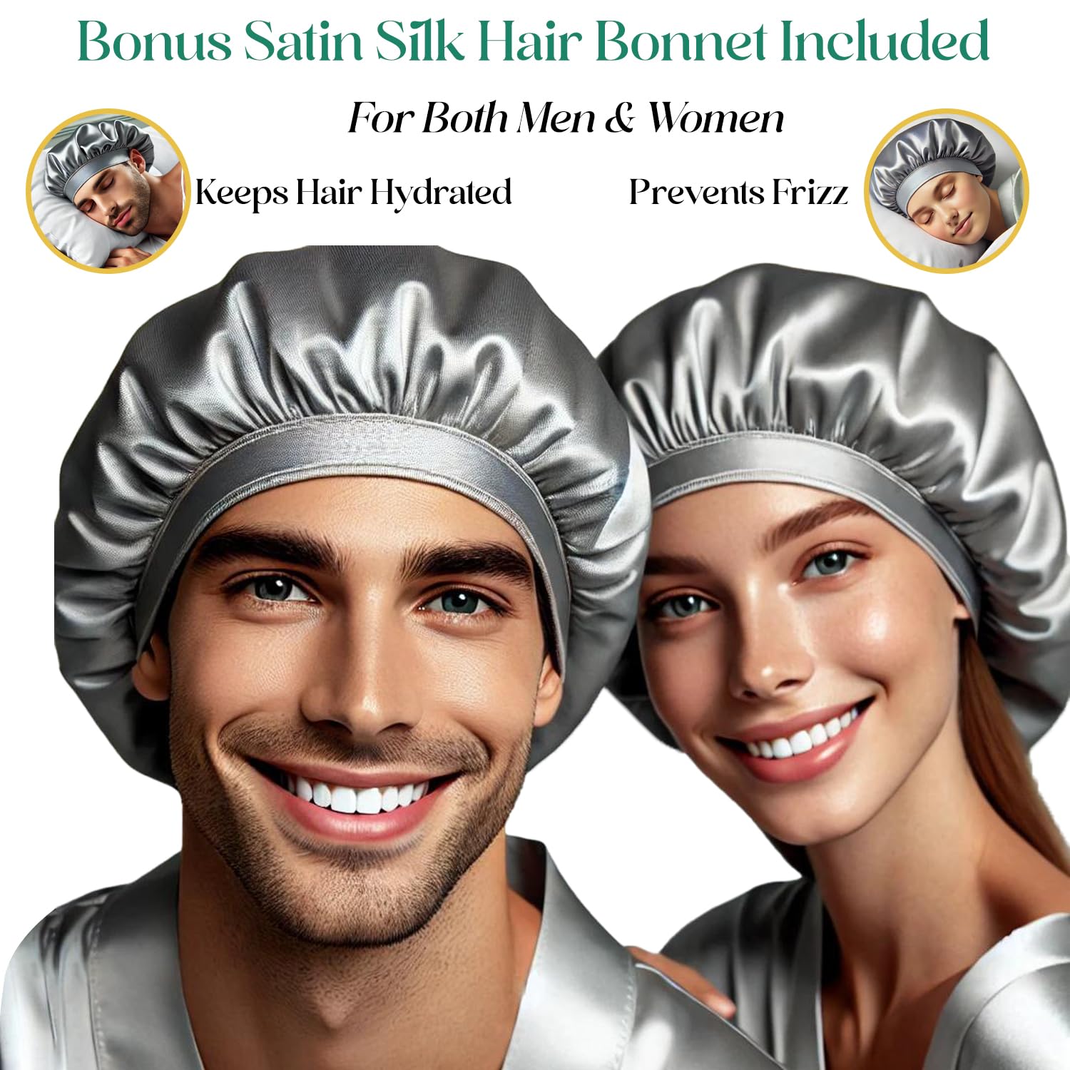 - Silk hair bonnet for overnight protection: Locks in moisture and natural oils to prevent tangling, breakage, and static; ensures softer, healthier hair and a comfortable night's sleep