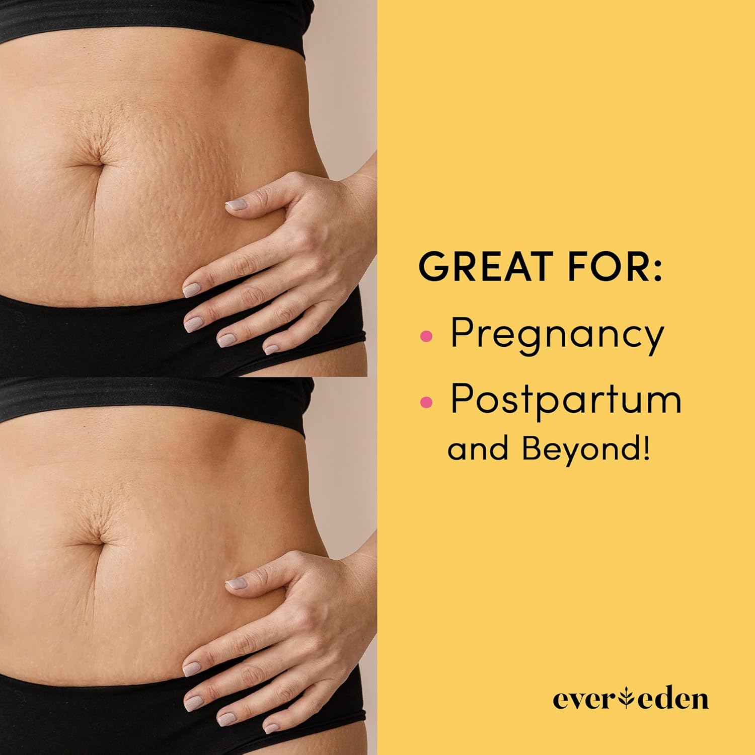 - FIRMS, BRIGHTENS, & SMOOTHS: Apply the luxurious pregnancy stretch mark cream, and follow with Golden Belly Serum to firm, deeply hydrate, and nourish skin.