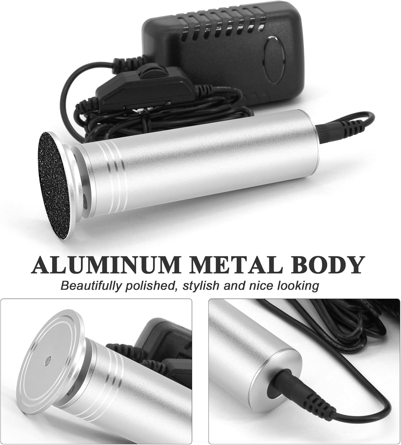 - PACKAGE LIST: 1x Upgraded Electric callus remover-silver, 1x US Plug, 1 Box 60pcs replacement sandpaper discs. 1x User manual, 1x dust brush. Pamper your feet with the convenience of this electric foot file. Its electric callus remover for feet feature makes it an essential tool for achieving salon-like results from the comfort of your home.