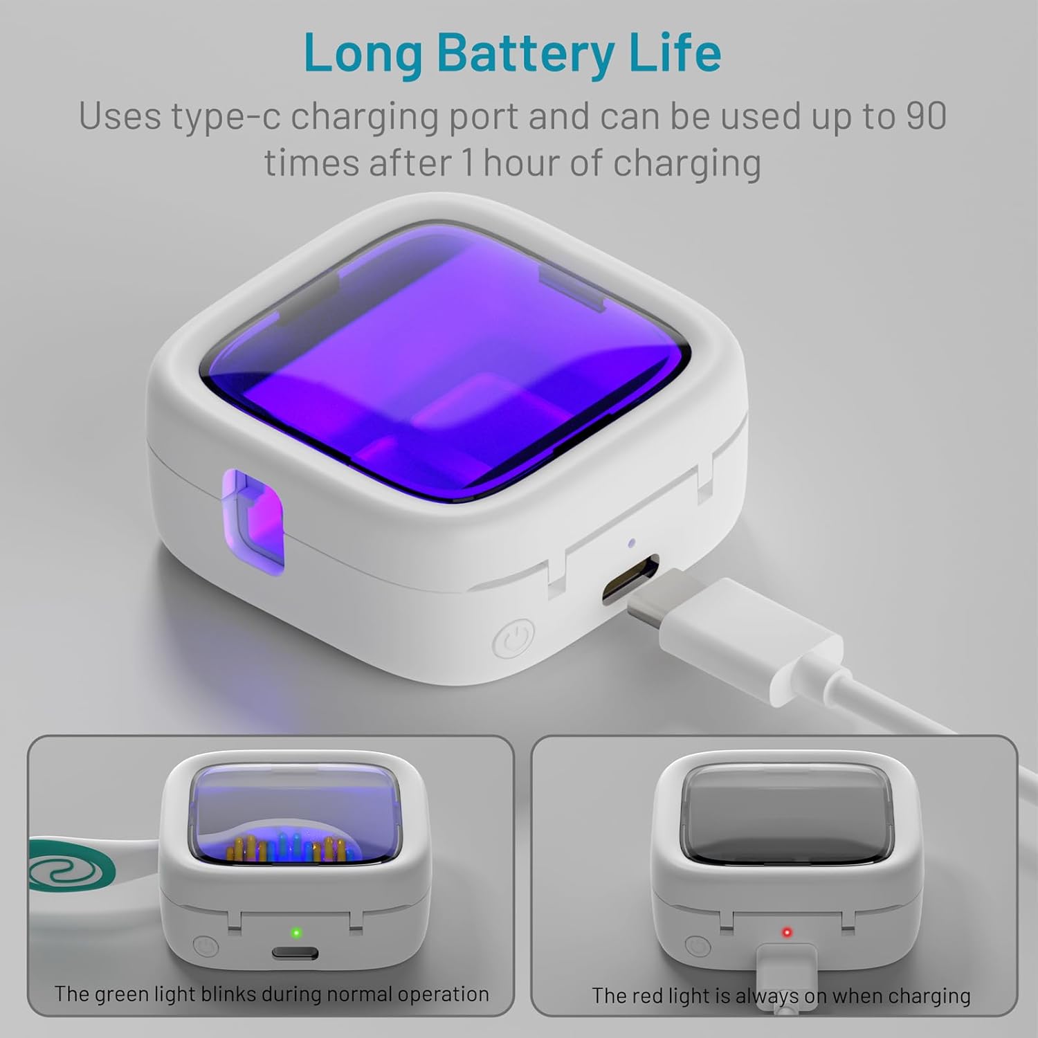 - Long Battery Life: This toothbrush cleaner case can be used up to 90 times after fully charged. Comes with a Type-C charging cable, charger is not included