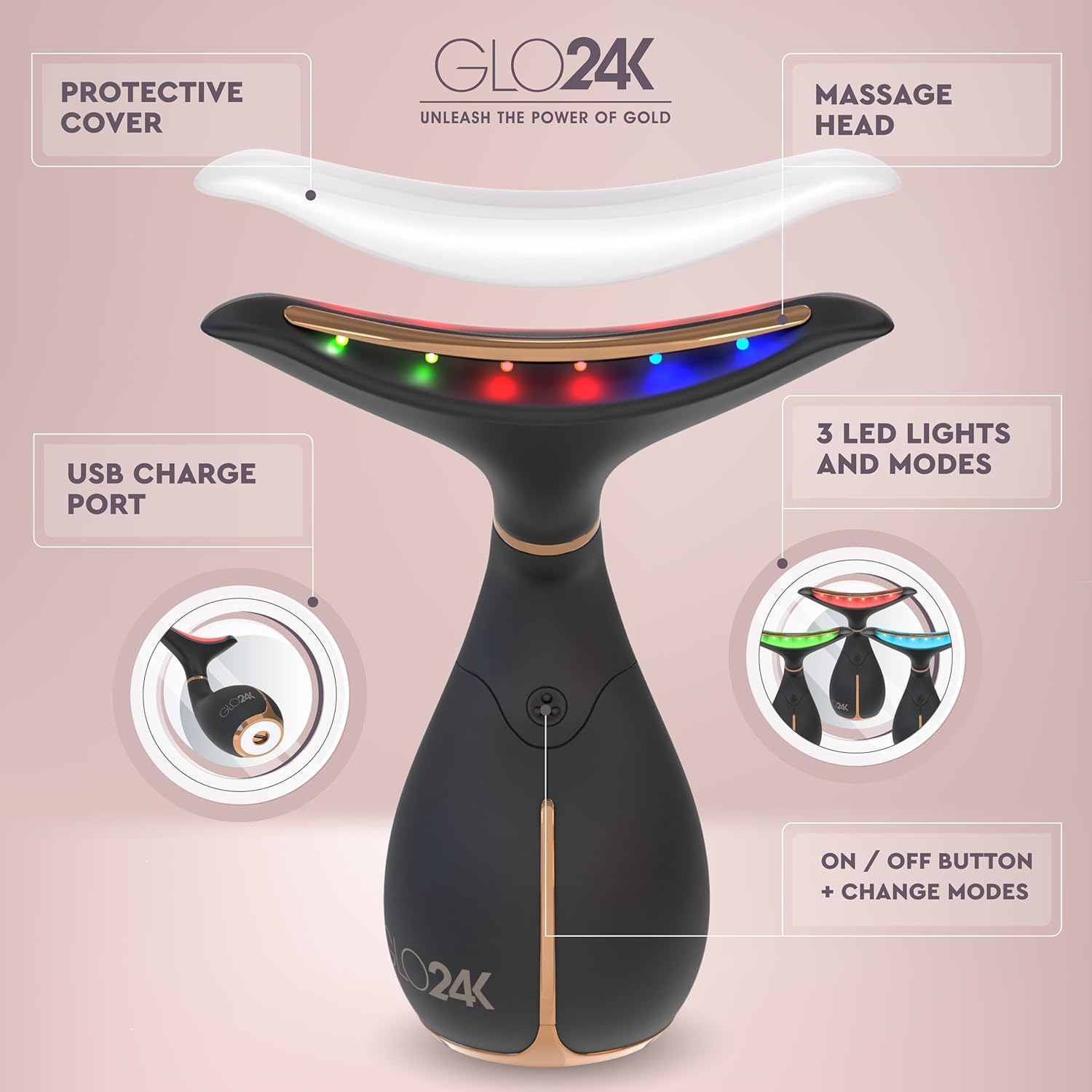 - Sleek and giftable—also known as the Glo24k red light skin rejuvenation beauty device—designed for comfortable self-care sessions.