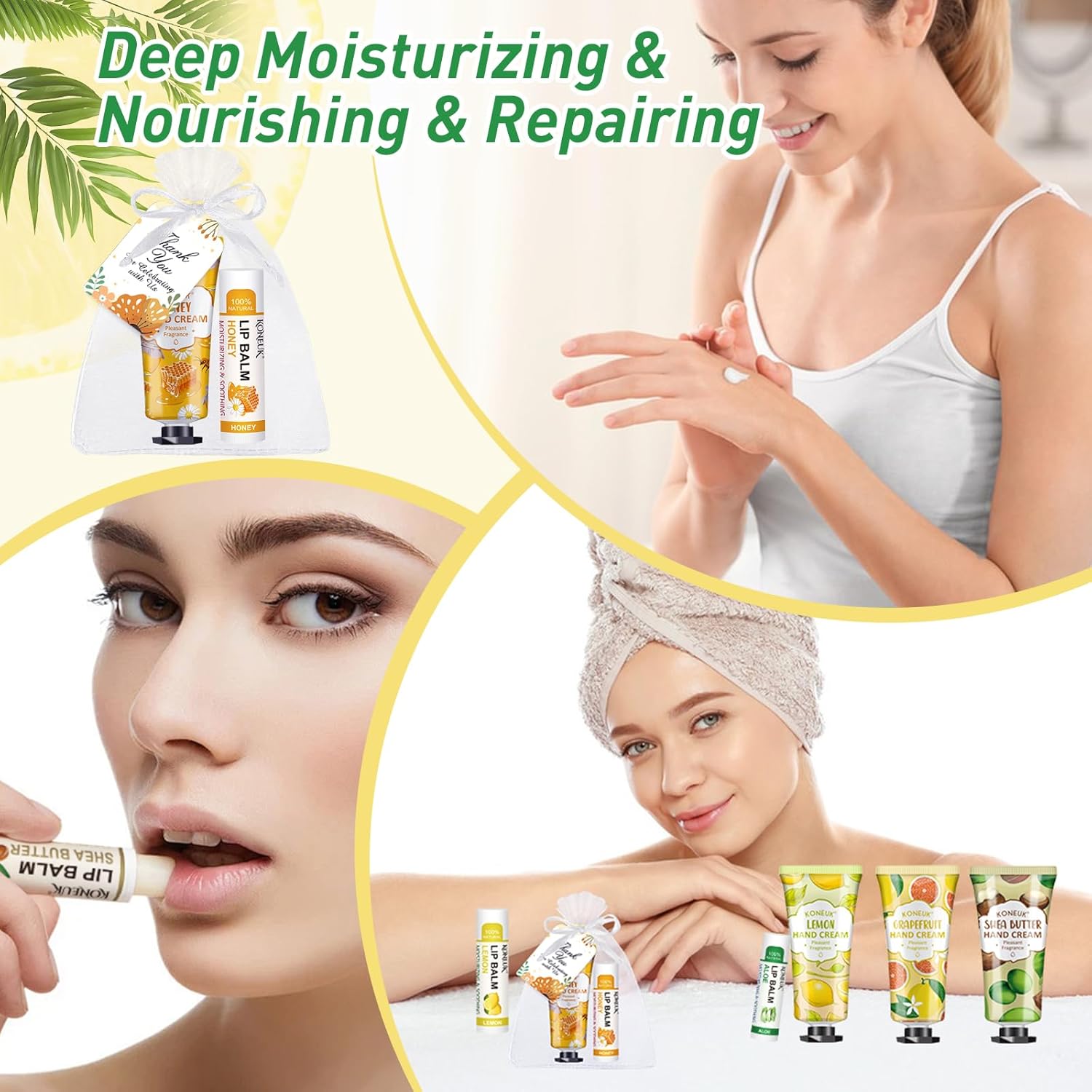 - 【Perfect Size and Weight】Our hand cream bulk and Lip balm bulk sets has a moderate volume and takes up little space,making it very suitable for carrying around.You can put them in your bag,car,desk,bedside table and dressing table,a pleasant fragrance that keeps you in a good mood every day