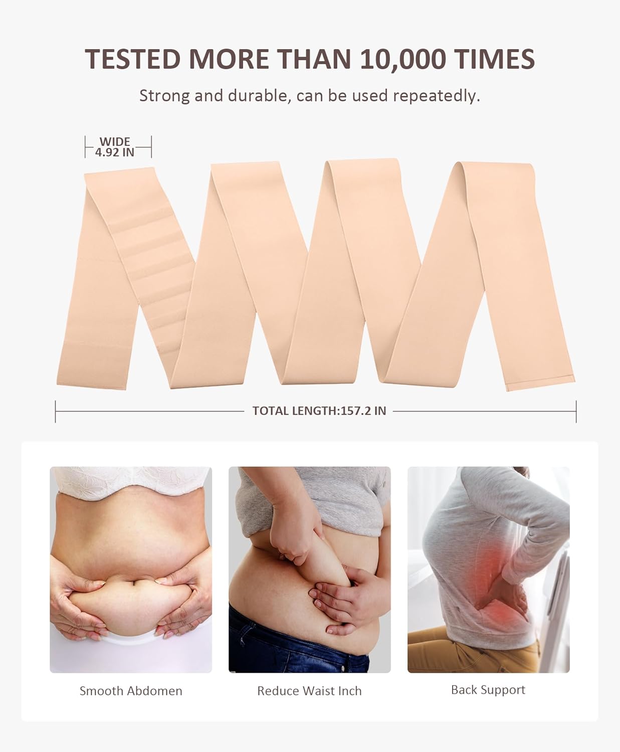 - One Size Fits All: Our waist wrap is designed to accommodate all body types with its one-size-fits-for all size within 23.5 IN-47.5 IN waistline. Measuring 157.2 IN in length and 4.92 IN in width, this bandage wrap offers versatility in snatching your waist, allowing you to adjust the tightness to your preference to your preference for ultimate comfort. Warm tips-Thinner women need to wrap more circles, will appear thick, full-figured women can wrap fewer laps and also have tummy coutrol.