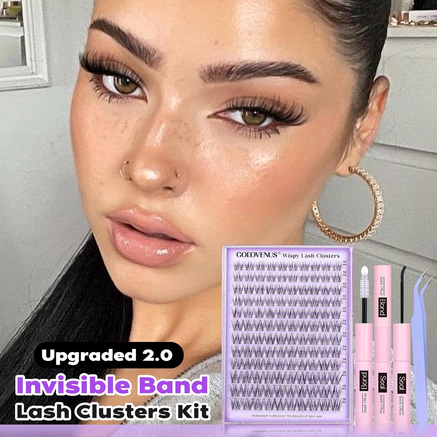 - 2. Upgraded Invisible Band Lash Clusters: Upgraded transparent cluster lash band, almost invisible,blend more naturally with real lashes. Soft and elastic cluster lash band, better adherence to the curve of the eye