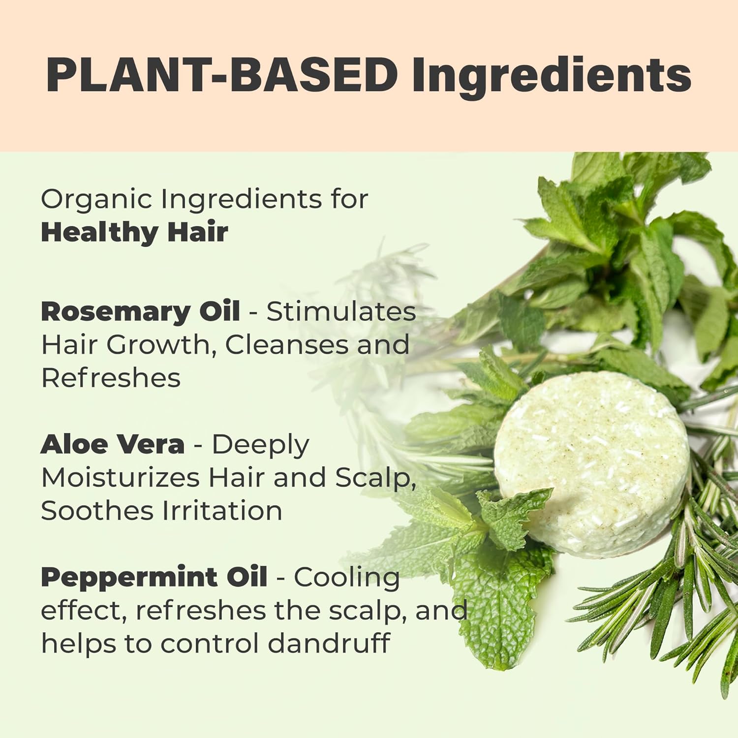 Relaxcation Organic Rosemary and Aloe Vera Solid Shampoo Bar for Hair Growth, Refreshing and Hydrating | Herbal Shampoo with Rosemary, Peppermint, Castor Oil, Argan Oil, and Betaine | Made in USA