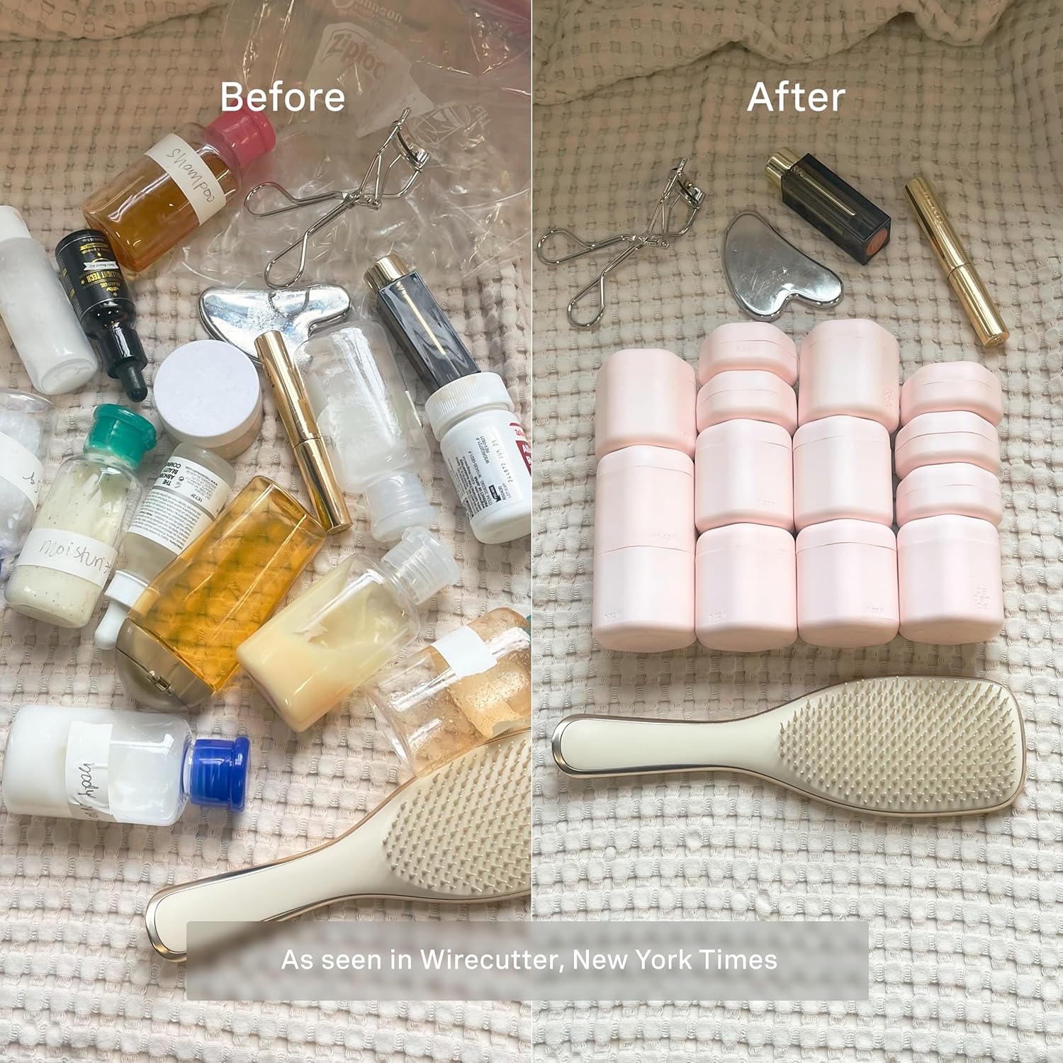 Cadence Travel Containers - Full Skincare Set - Magnetic Containers with Lids,Carry On Travel Essentials For Women/Men - 2 Small (0.56oz), 4 Medium Capsules (1.32oz), & Extender (1.43oz) - Petal