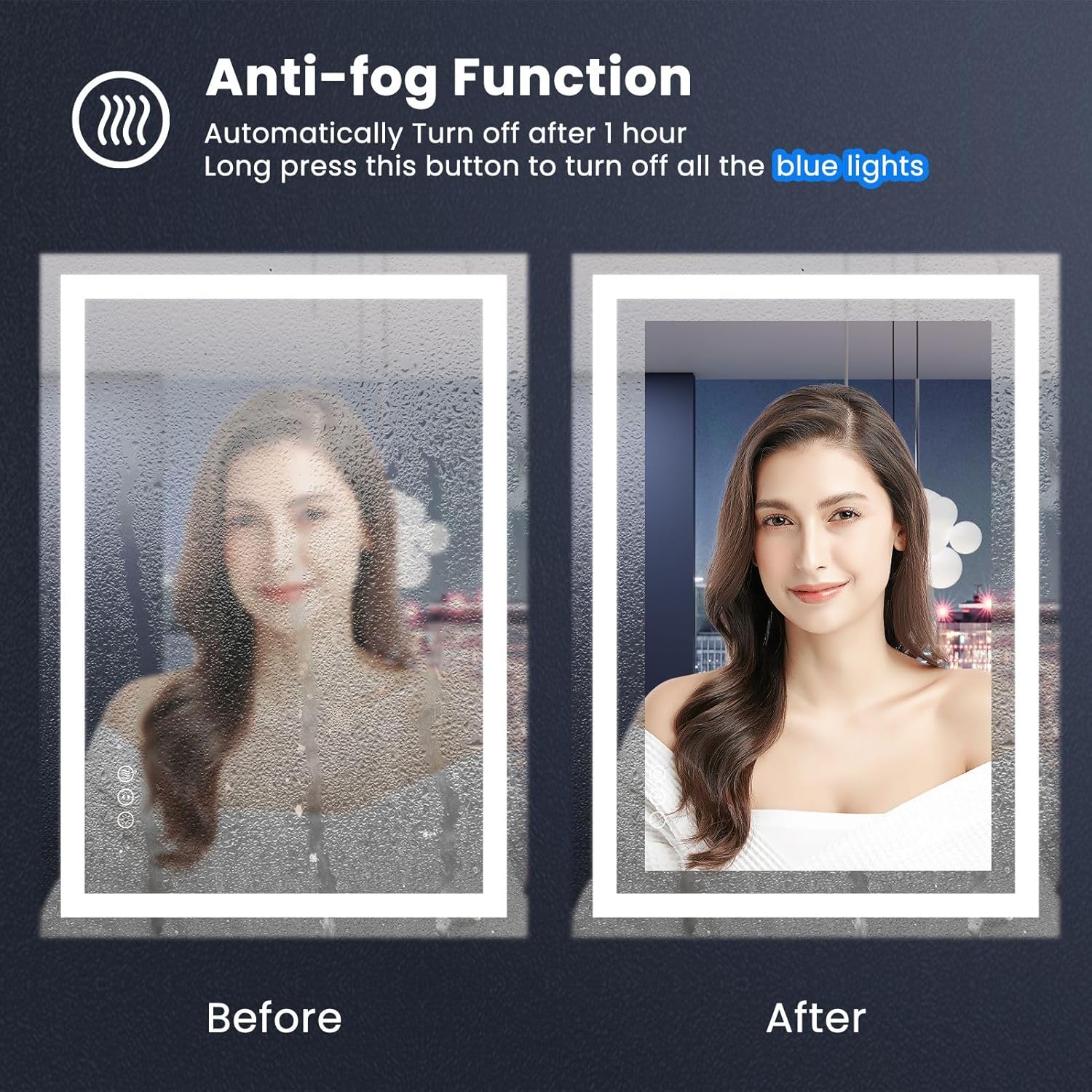 Amorho LED Mirror for Bathroom 24X36 Inch with Backlight and Front Lit, Fogless Mirror for Wall Mounted, Dimmable, 3 Colors, Memory