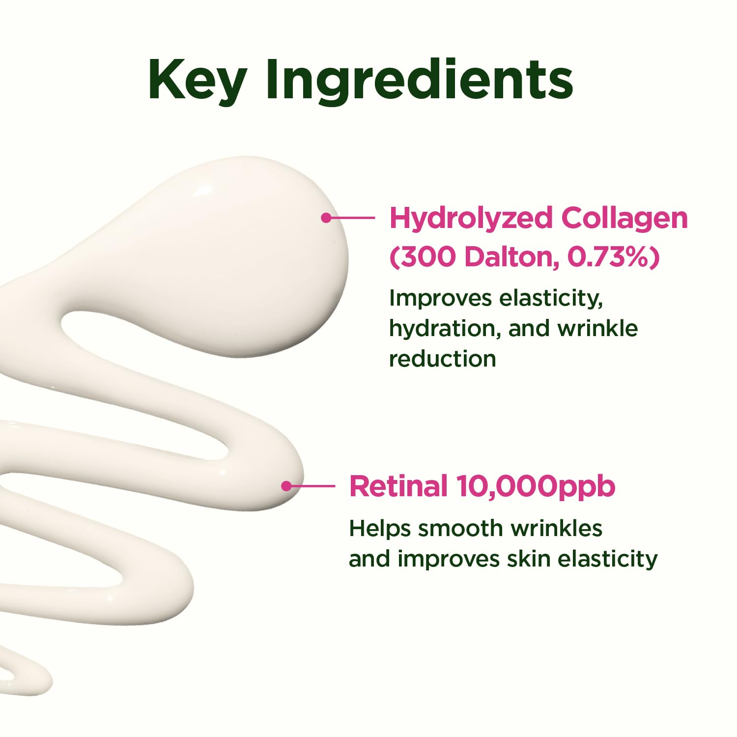 - FIRM & HYDRATE WITH RETINOL & COLLAGEN – Transform your skin with retinol and 300 Dalton low-molecular collagen. Deeply penetrate, firm, and hydrate while visibly reducing fine lines, wrinkles, and sagging for a smoother, younger-looking complexion. Regular use boosts elasticity and gives a radiant, lifted appearance.