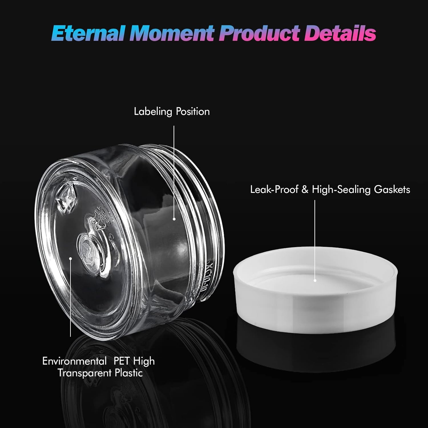 50 Pack 1 OZ Plastic Jars Round Clear Cosmetic Container Jar with White Lids, Eternal Moment Plastic Slime Jars for Lotion, Cream, Ointments, Makeup, Eye shadow, Rhinestone, Samples, Travel Storage