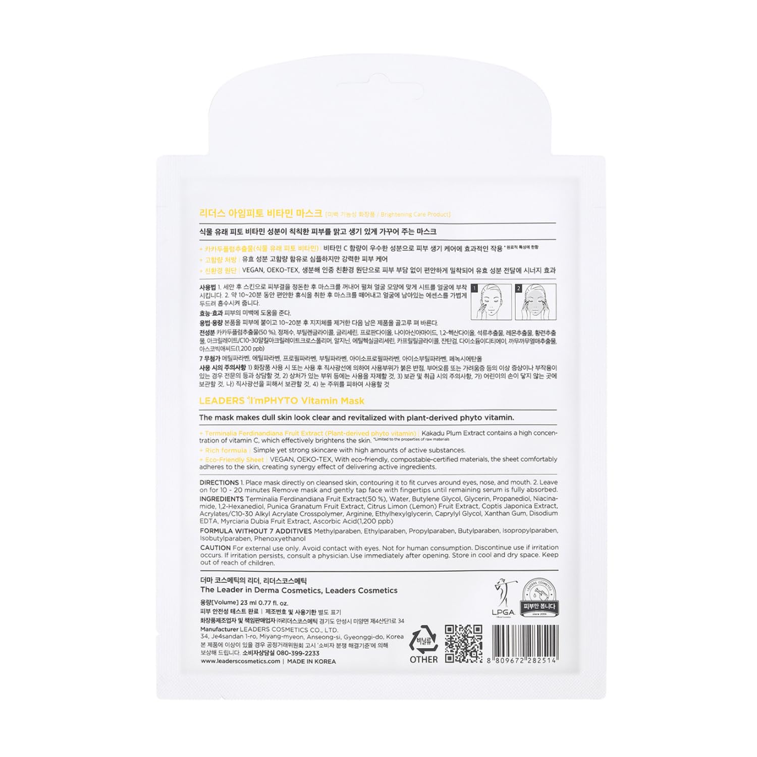 - CERTIFIED VEGAN & CRUELTY-FREE – Leaders I'M PHYTO Vitamin Mask has been officially certified by Italy's V-Label, ensuring our products are free from animal-derived ingredients and have not been tested on animals, so you can feel good about indulging in our skincare products. Ideal for individuals prioritizing ethical and sustainable beauty solutions, our Vitamin Mask delivers effective skincare results with eco-friendly practices. Embrace the feeling of nourished skin and good conscience!