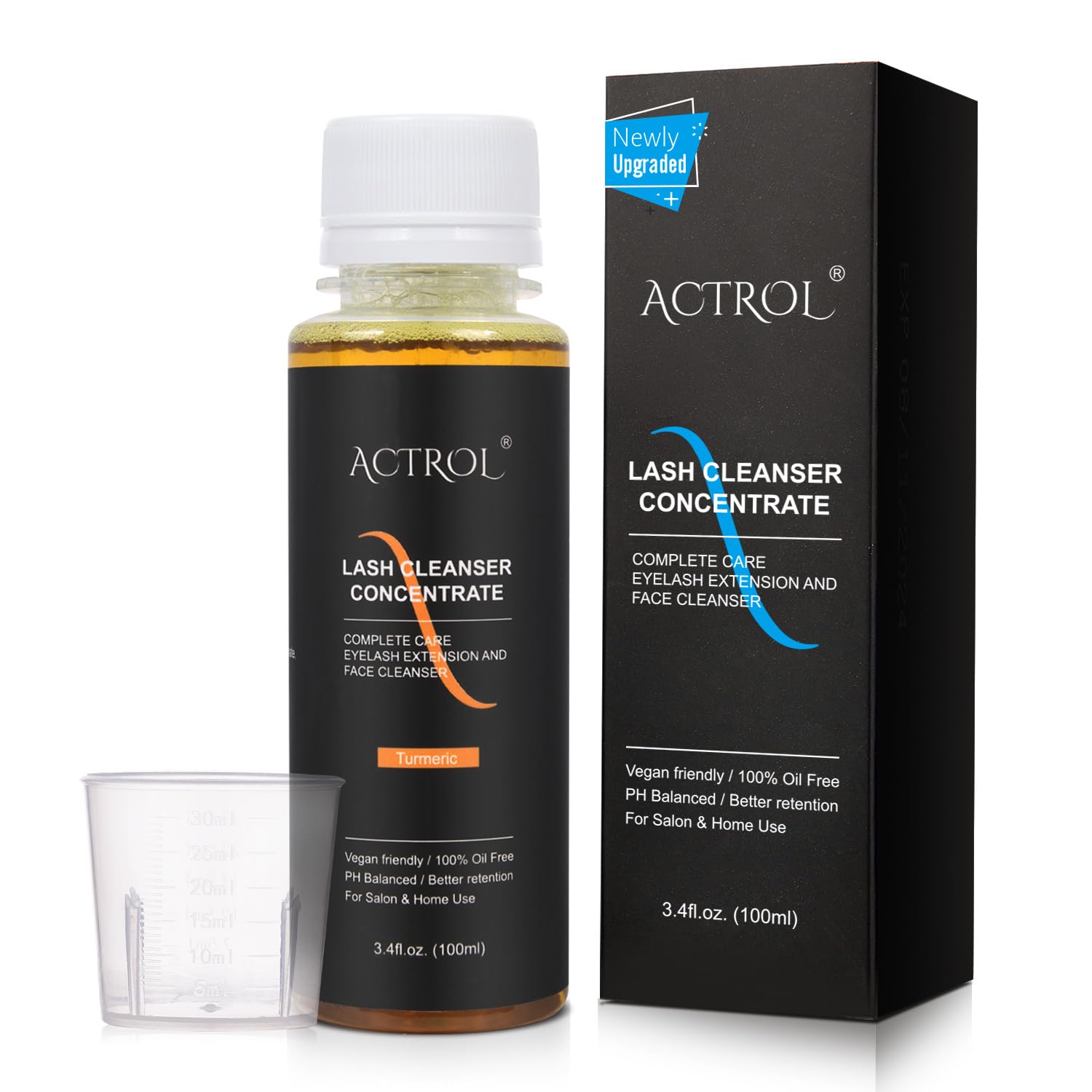 Eyelash Shampoo Concentrate 100ml Lash Extensions Cleanser Concentrate Turmeric Foaming Shampoo Paraben & Sulfate Free Wash for Extensions Lashes with Salon Home Care-Makes 60ml Bottles