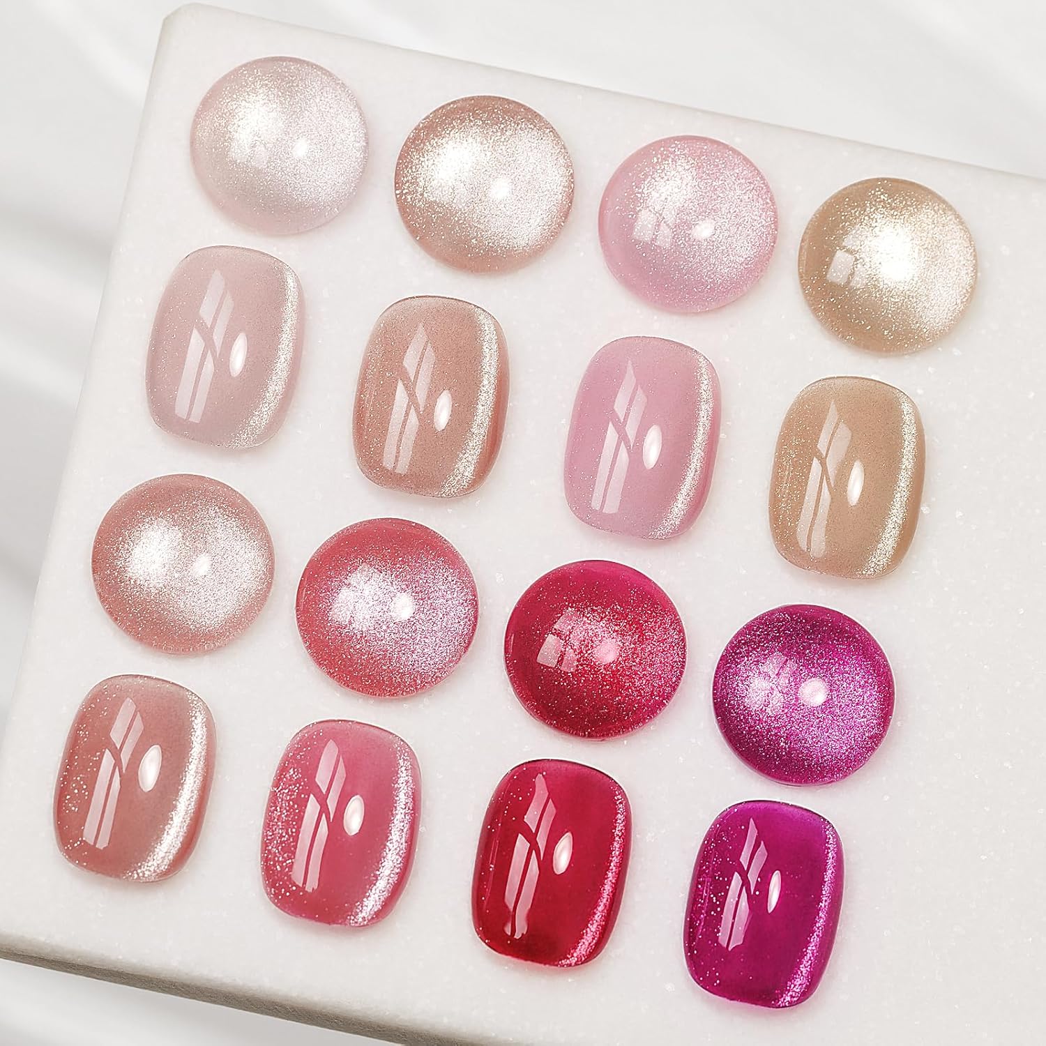 - Stardust Cat Eye Effect & Ideal Gift Choice: Crystal pink colors with cat eye effect, brings you a brilliant glossy finish, to feel the starlight swaying under different angles. Wherein, the pink series is a symbol of elegance. The package is ready to gift, which is appropriate for families or friends on festivals such as birthdays, Mother's Day, Valentine’s Day, Christmas, etc.