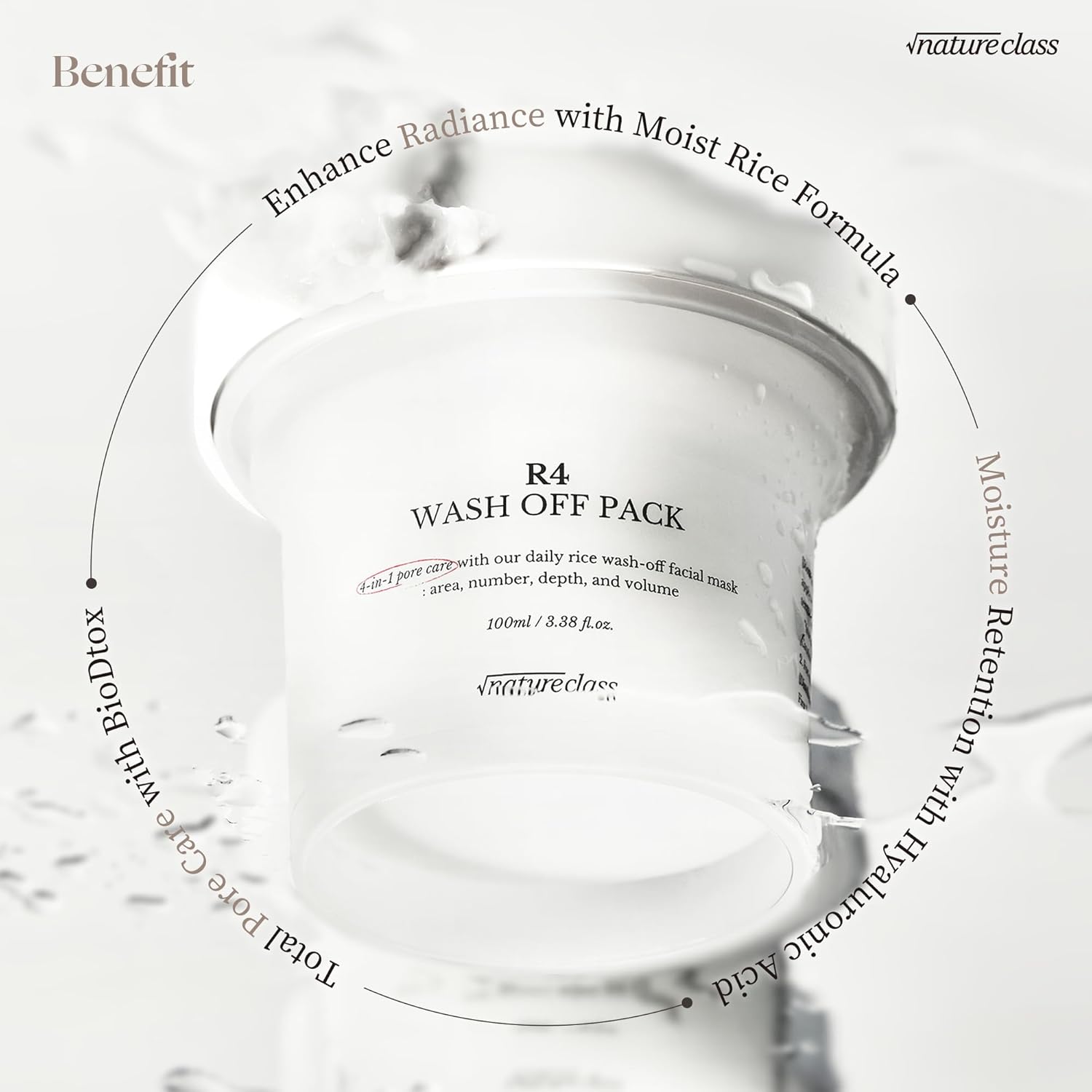 R4 Rice Wash Off Facial Mask – 4-in-1 Pore Care, Deep Cleansing, Hydrating, Exfoliates, Pore Sebum Clearing, Gentle Exfoliating Korean Skincare 3.38 Fl Oz