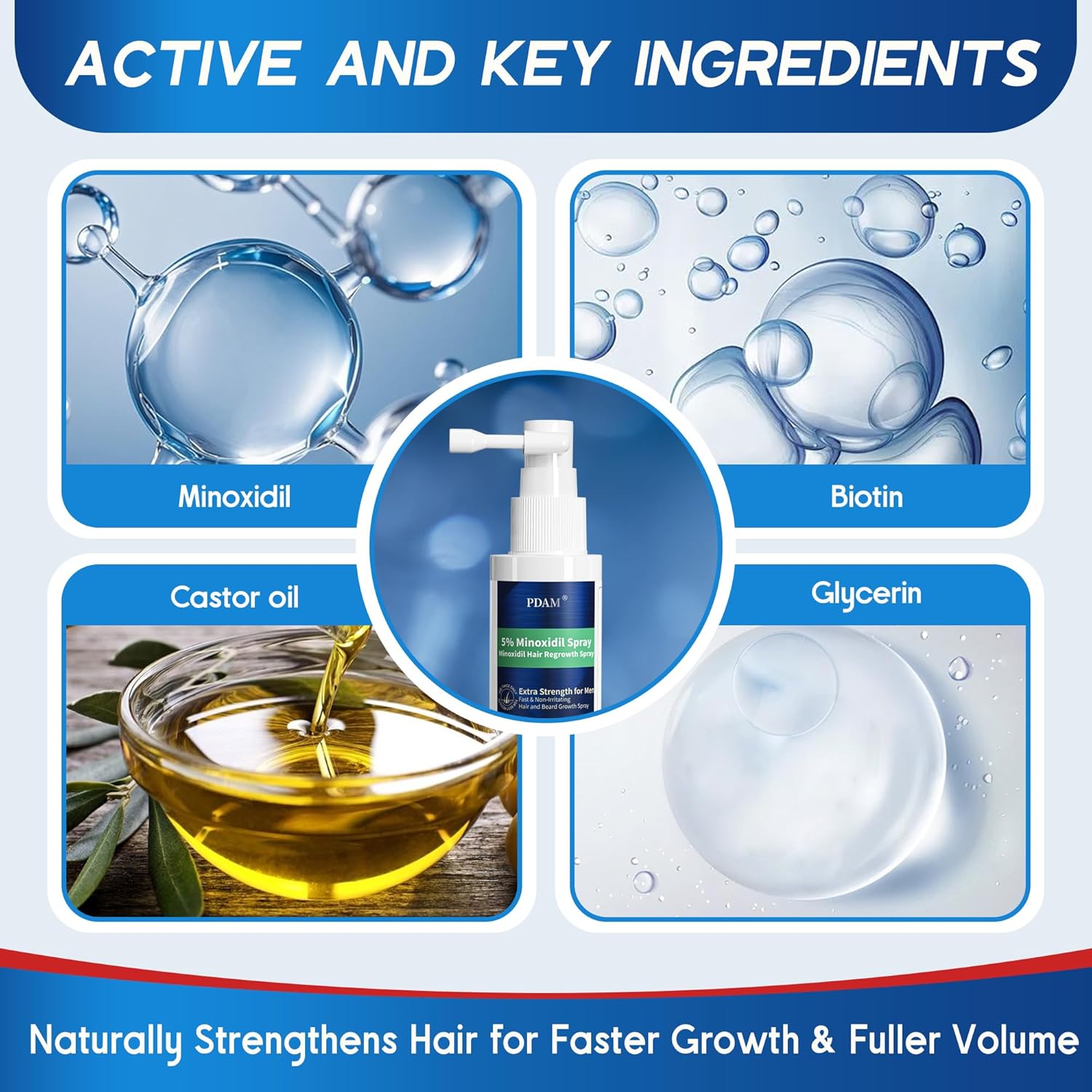 - Powerful 5% Minoxidil Spray for Men - Clinically formulated hair regrowth treatment for hair loss & thinning hair featuring dermatologist-recommended 5% minoxidil to strengthen follicles and promote visibly thicker, fuller hair with consistent twice-daily use