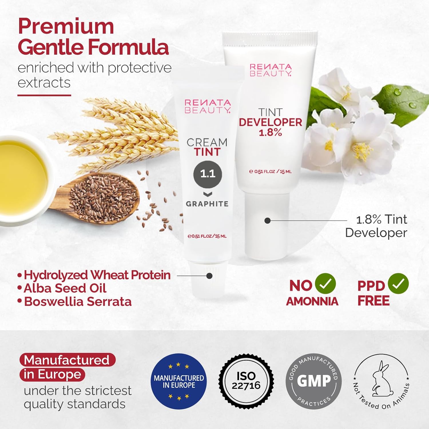 RB RENATA BEAUTY Tint Kit – Cream Hair Dye Kit with Developer and Application Brush for Spot Coloring - Covers Gray Hairs, Smudge-Proof, Long-Lasting Up to 4 Weeks, 20 Applications [Graphite]