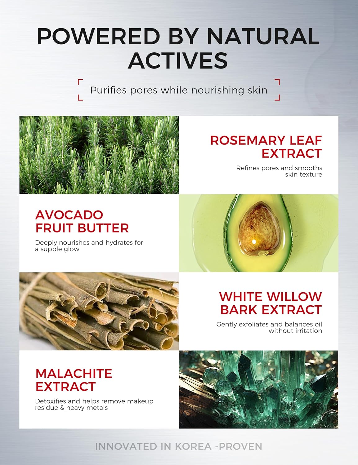 - Product Benefits : Deep cleansing, clarifying and controlling oil, shrinking pores