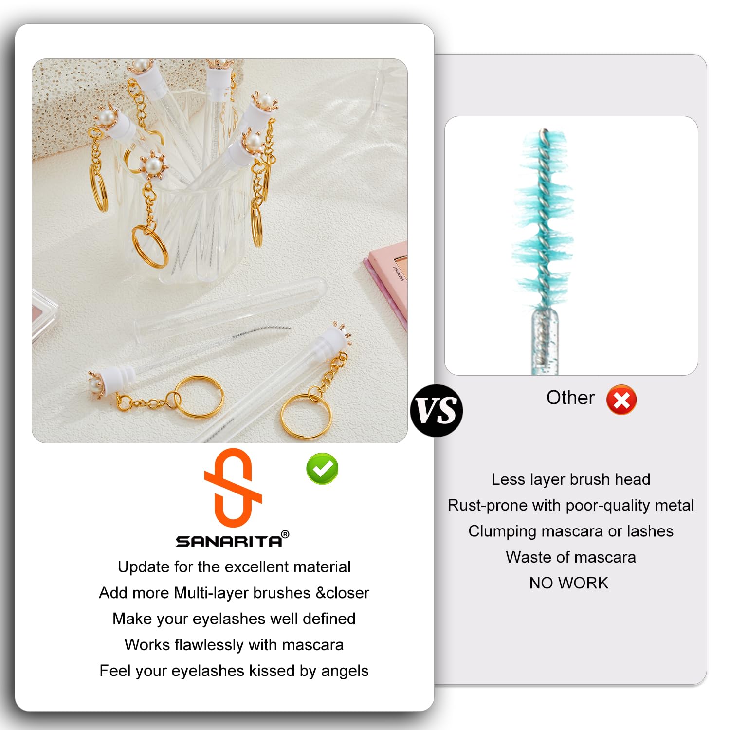 Upgrade 48 Pieces Disposable Mascara Wands Set,Include 24 Pcs Crystal Lash Spoolies Brush and 24 Pcs Reusable Keychain Empty Eyelash Brush Tubes