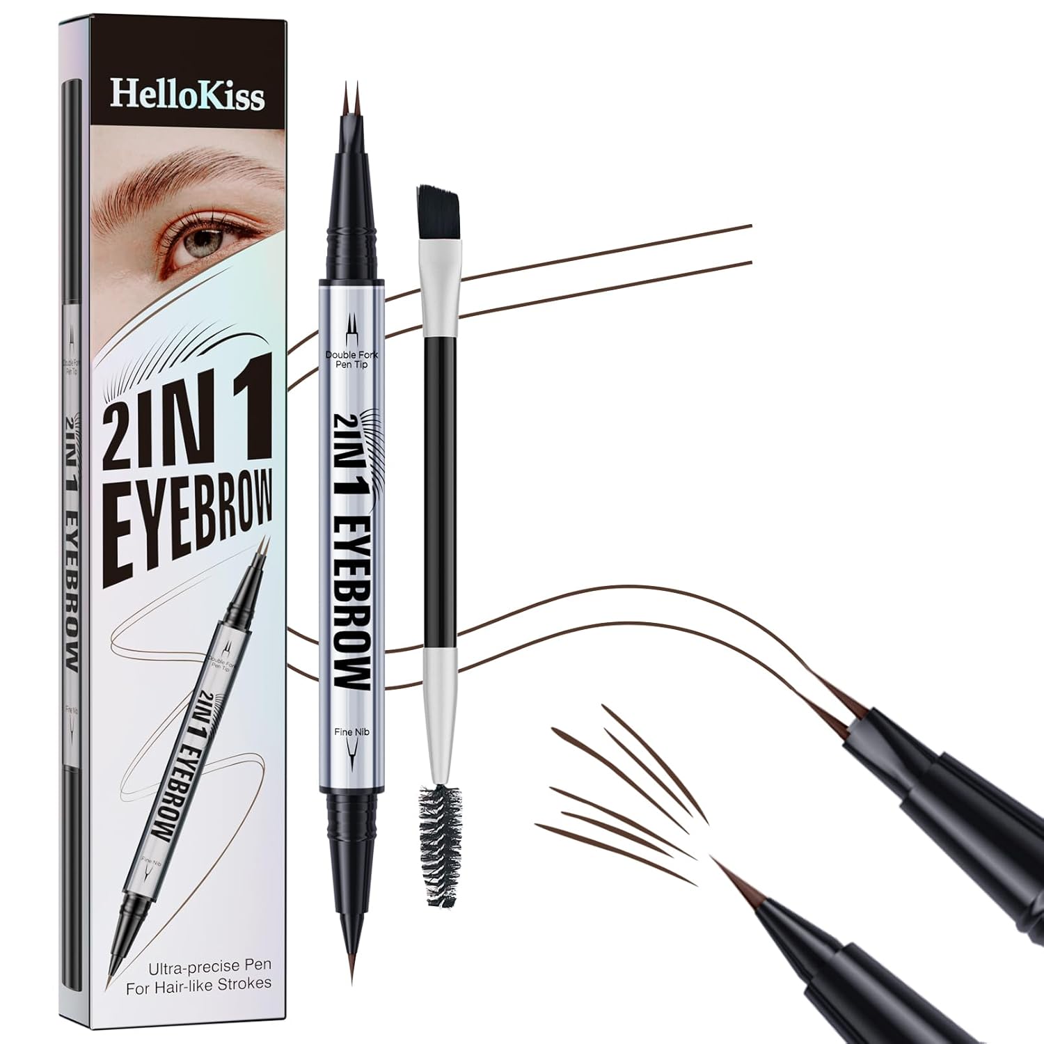 Eye Brow Pencils for Women Brown,2-in-1 Dual-Ended Eye Brow Pencil with 2-Fork-Tip and Precise Brush-Tip, Microblading Eyebrow Pen for Waterproof Long Lasting Natural Hair-Like Brows(Dark Brown)