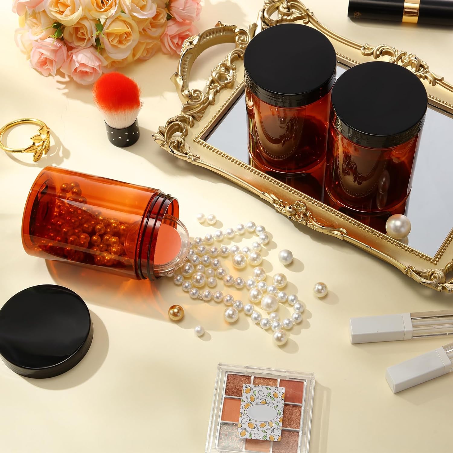 Patelai 4 Pieces Round Wide-mouth Leak Proof Plastic Container Jars with Lids for Travel Storage Makeup Beauty Products Face Creams Oils Salves Ointments DIY Making(10 Ounce,Amber)