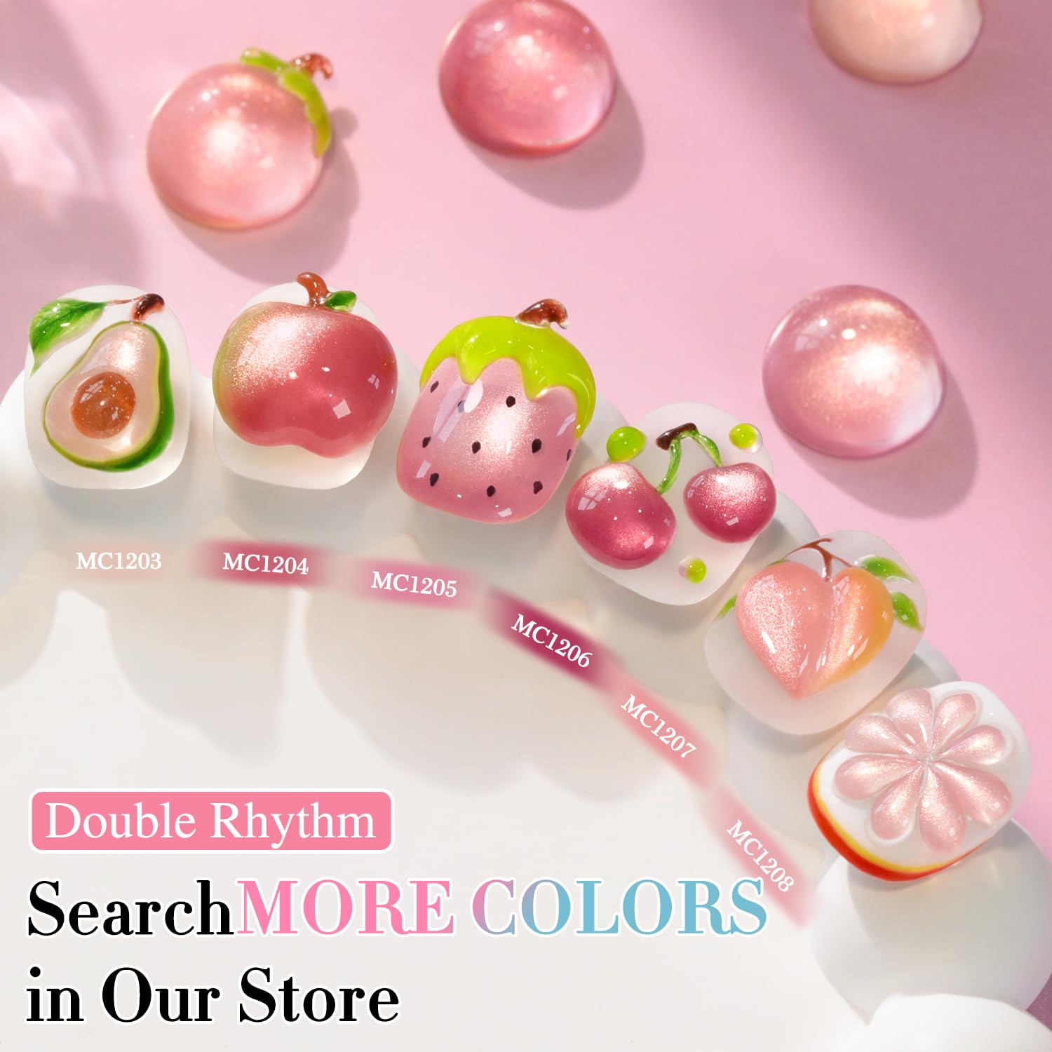 Double Rhythm 0.5 OZ Cat Eye Gel Polish with Magnet 15ML Holographic Glitter Shimmer Translucent Jelly Color Magnetic Nail Polish Salon DIY at Home (Fruit Nude-MC1203)
