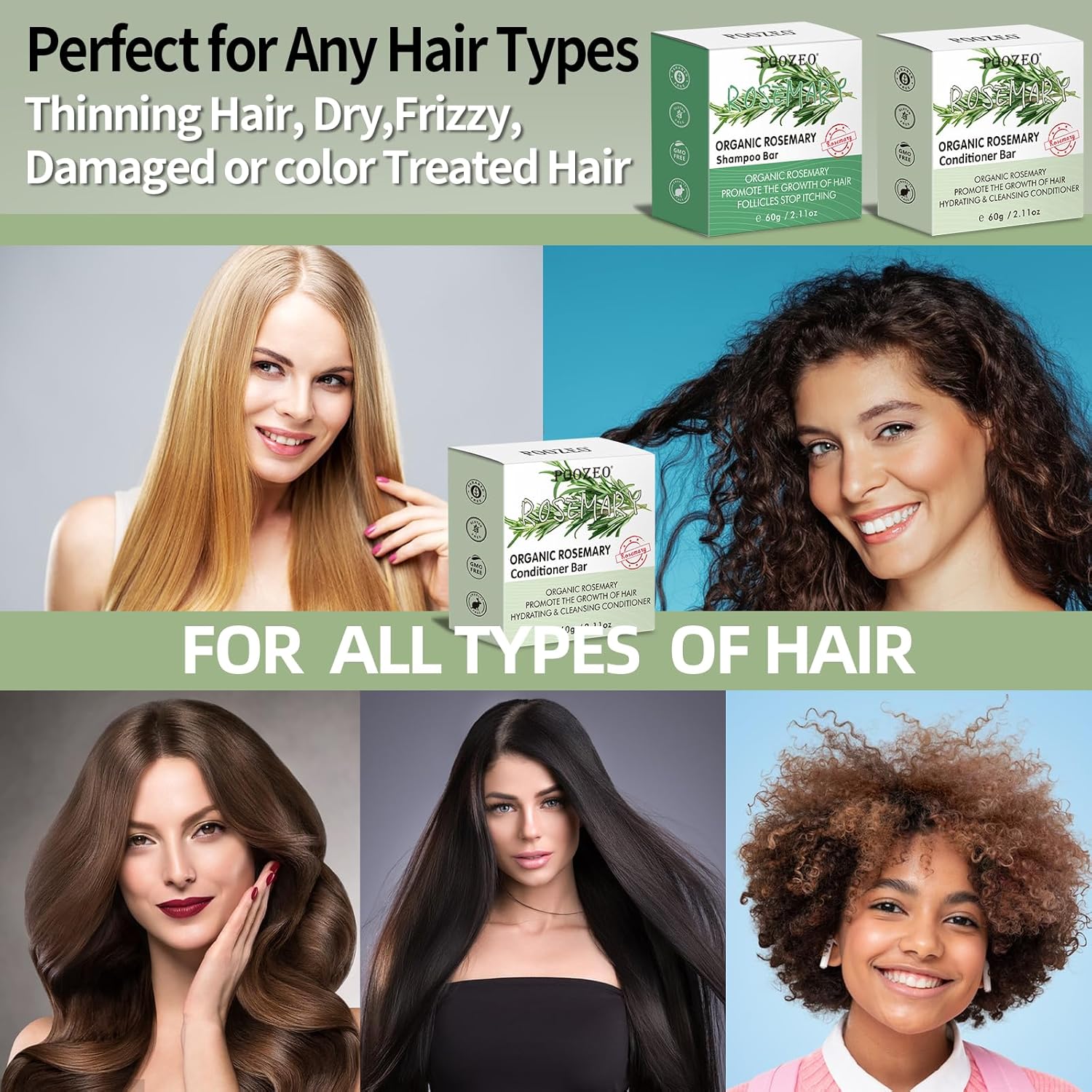 - Rosemary Shampoo and Conditioner Bar Set: Infused with rosemary and Argan Oil, this bar shampoo and conditioner set provides a luxurious lather while adding volume to your hair, making it look fuller and healthier. This rosemary shampoo and conditioner with biotin is ideal for both men and women experiencing thinning hair.