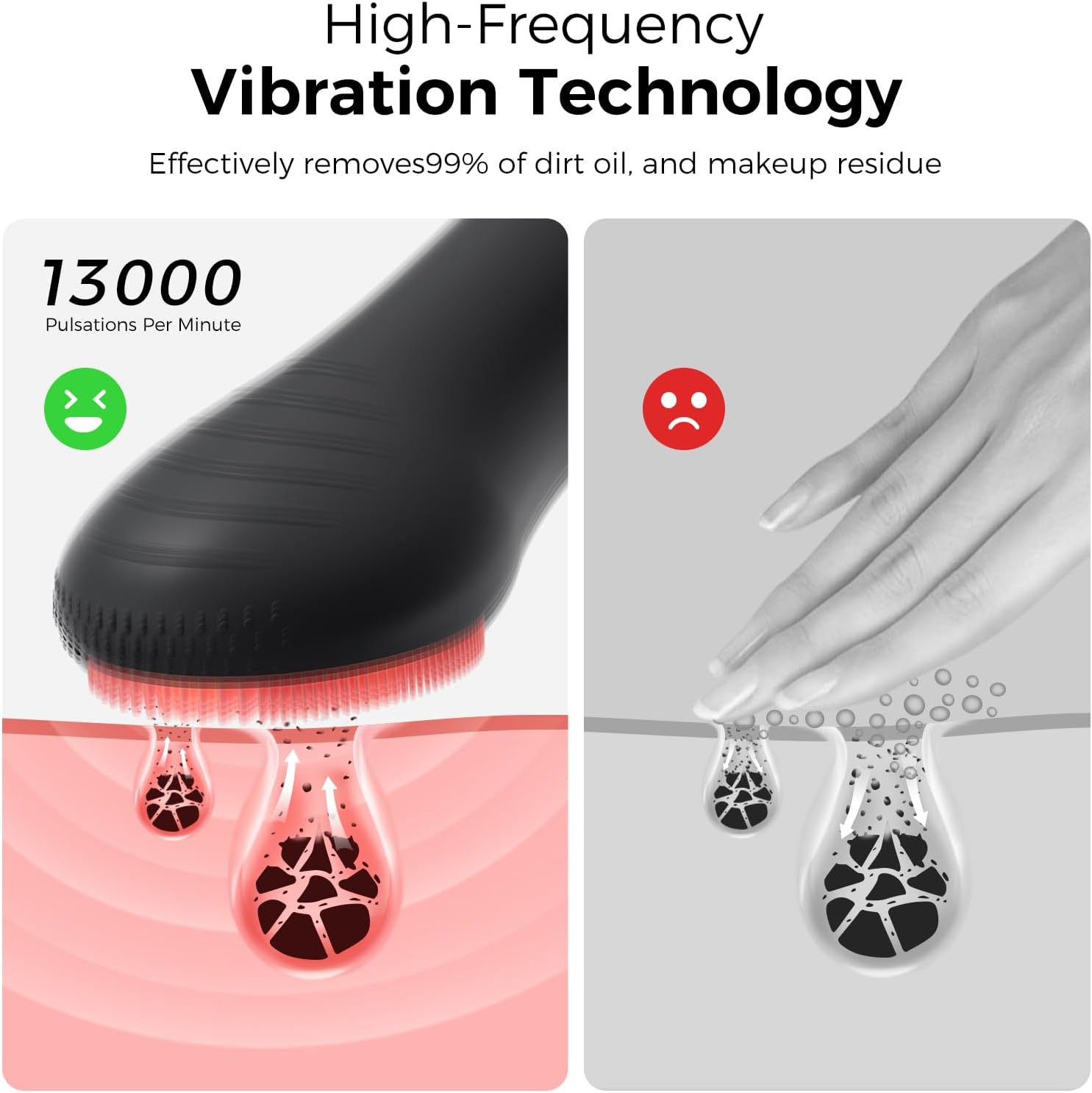 - Deep Pore Purge with Warming Tech & Massage Boost: Unleash a truly thorough cleanse! The built-in 55°C warming function melts away stubborn sebum, pollutants, and makeup residue, ensuring pores are meticulously cleared. Flip the device to reveal its textured ergonomic back—expertly designed to massage serums and creams into skin, boosting absorption and circulation. This 2-in-1 action revitalizes your complexion, reduces puffiness, and promotes a firmer, luminous appearance in just minutes.