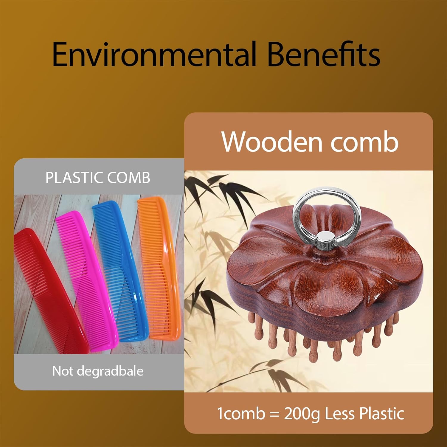 Wooden Scalp Massager for Hair Growth & Detangling - Wide Tooth Wooden Hair Brush with Body Massage Nodes, Stress Relief & Improved Blood Flow