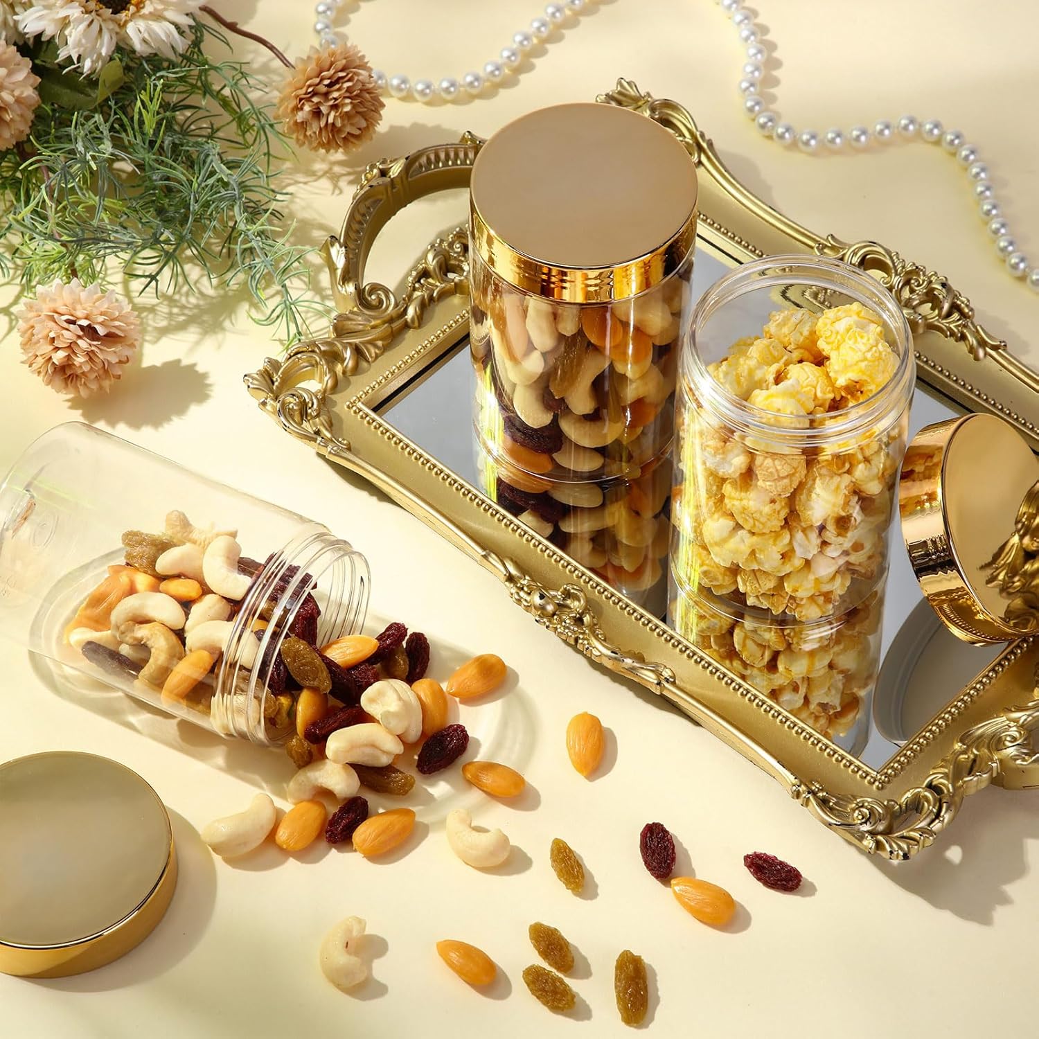 SATINIOR 100 Pcs Plastic Jars with Lids Small Containers Lids Wide Mouth Small Plastic Containers for Lotion Cream Rhinestones Body Butters Travel Storage(10 oz,Gold)