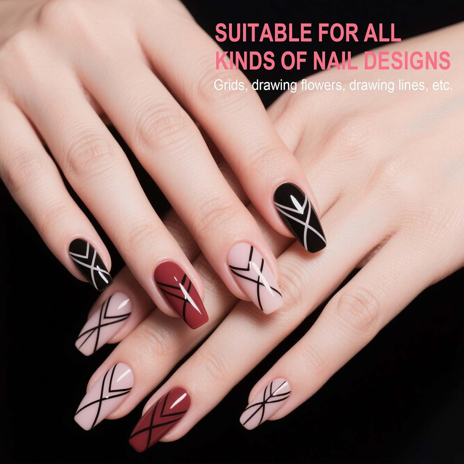 - 【FEATURES】The variety of brush sizes is great for nail art design, helping you create beautiful nail patterns in seconds. Ideal for drawing thin fine lines, Great for small details,short strokes.