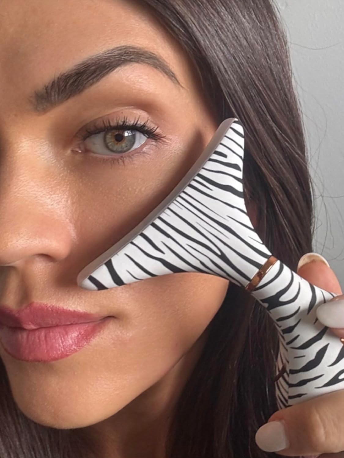 - Face sculpting device for cosmetic massage; ergonomic face massager tool that fits easily into skincare before makeup or bedtime.