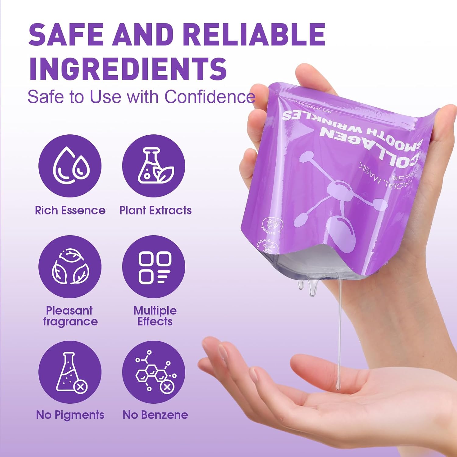 - 【Suitable for All Skin Types】No matter if your skin is dry,oily,or sensitive,this collagen face masks set is suitable for you.The skin absorbs the rich collagen essence,hydrating and moisturizing while improving rough skin,nourish the skin,and make the skin more hydrated and firm