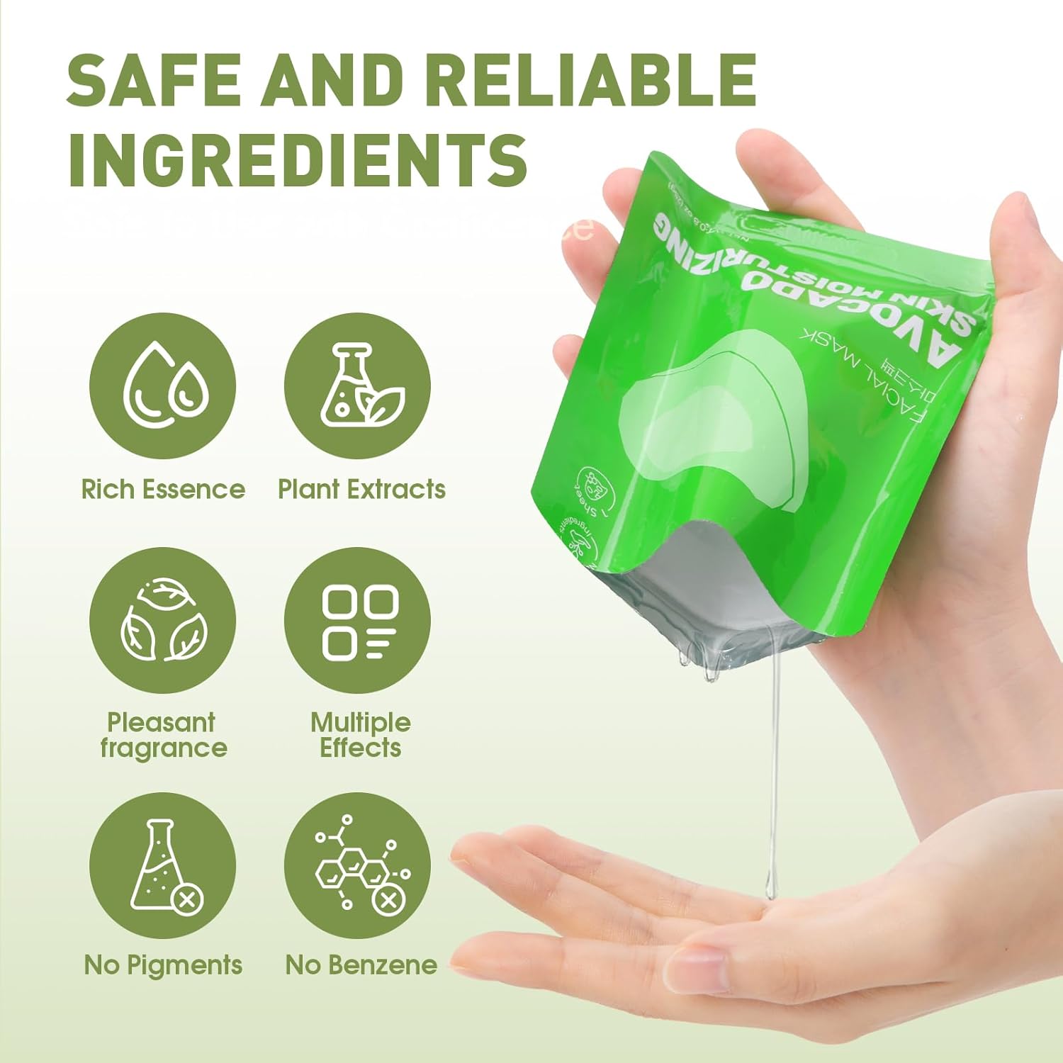 - 【48 Pack Hydrating Face Masks】Our face masks skincare includes a total of 12 types: collagen,seaweed,aloe,avocado,pearl,cucumber,grapefruit,lemon,honey,pomegranate,charcoal,and milk,4 pieces of each type of facial mask.Different facial masks target different skin problems,deeply hydrate,improve dryness,and make skin softer and smoother