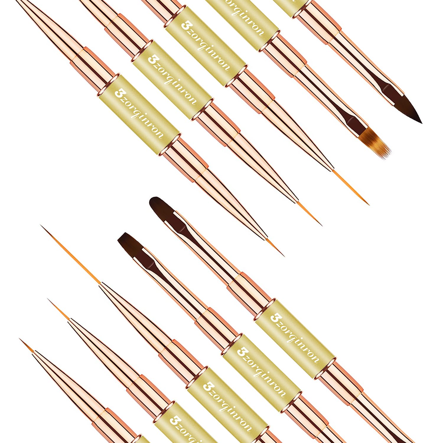 Nail Art Brushes for Nail Art, Professional 5Pcs Double-Ended Acrylic Nail Brush Set for Details, Long Lines, Ombre & 3D Design-Perfect for DIY Manicures & Salons (Gold)