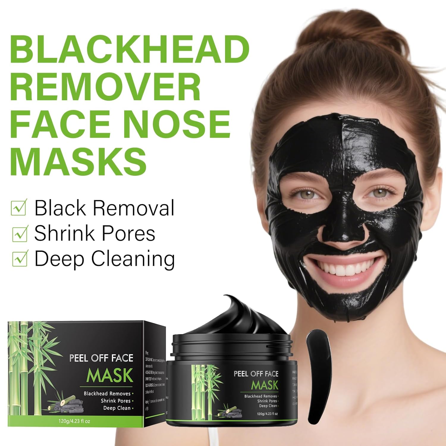 Blackhead Remover Mask for Women & Men, Bamboo Charcoal Peel Off Black Masks,Oil Control Deep Cleansing,for All Skin Types(4.23OZ)