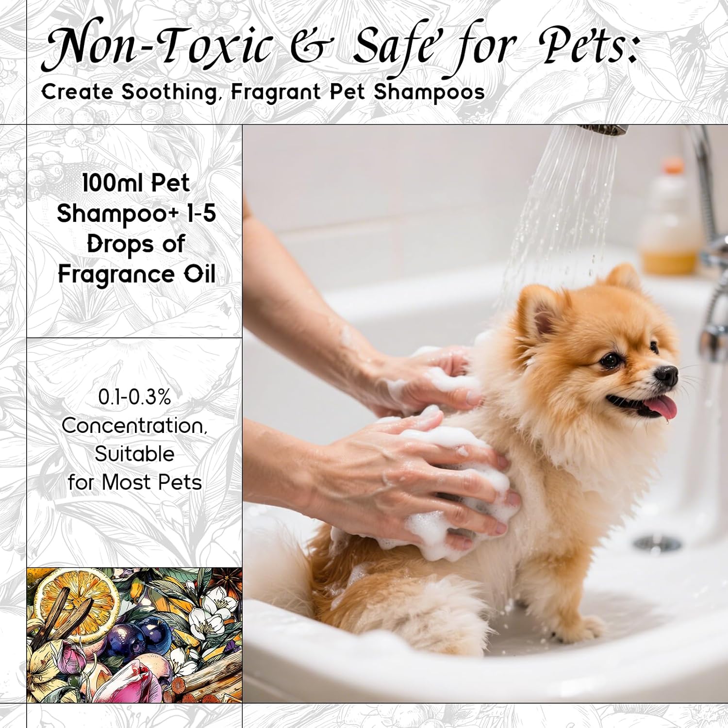 - Pet-Safe Formula – Certified pet-friendly and non-toxic when properly diluted. Safely add to pet grooming & odor control products for a soothing, aromatic experience