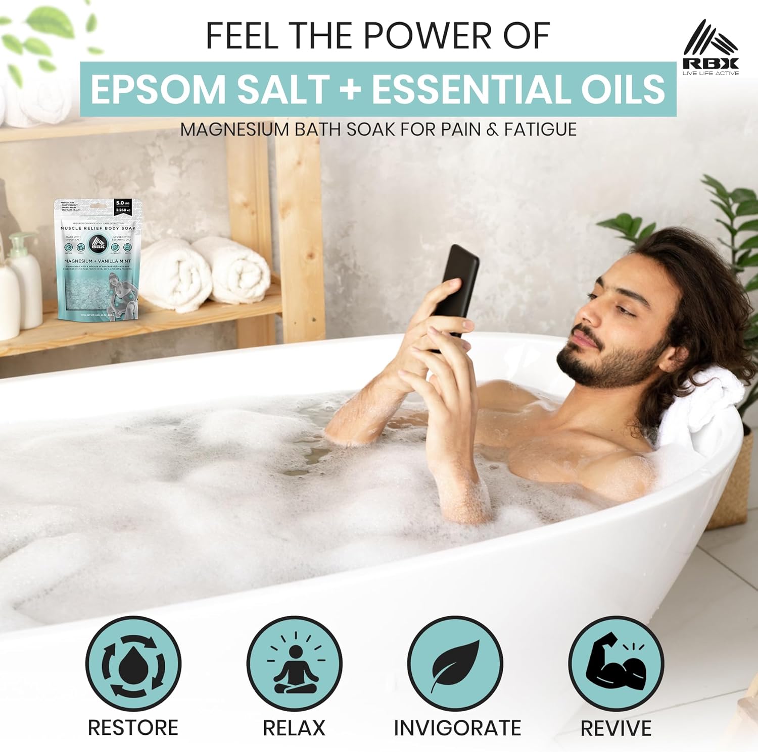 - POWERFUL MUSCLE RELIEF & RECOVERY - Soothe sore, tired muscles after workouts with RBX Muscle Relief Epsom Salt Bath Soak, enriched with magnesium flakes and premium bath salts. Perfect for easing pain, reducing tension, and supporting fast post-exercise recovery while enjoying a refreshing Vanilla Mint scent.