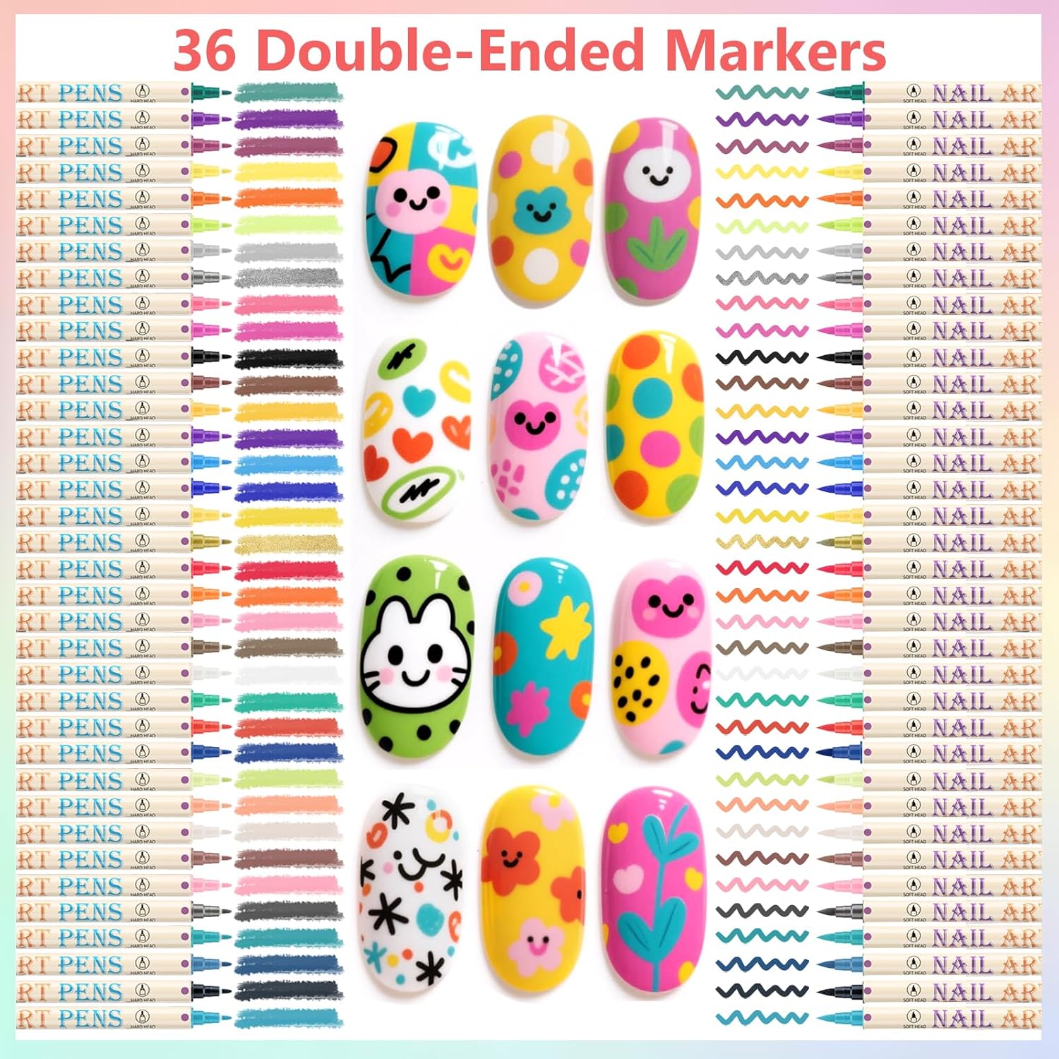 36 Colors Nail Art Pens Set, 3D Nail Polish Pens Quick-Drying Acrylic Paint Markers,For Nail Art Drawing Painting Nail Point Dotting Liner Pen, Nail Design Kit Manicure Tools Home & Salon DIY