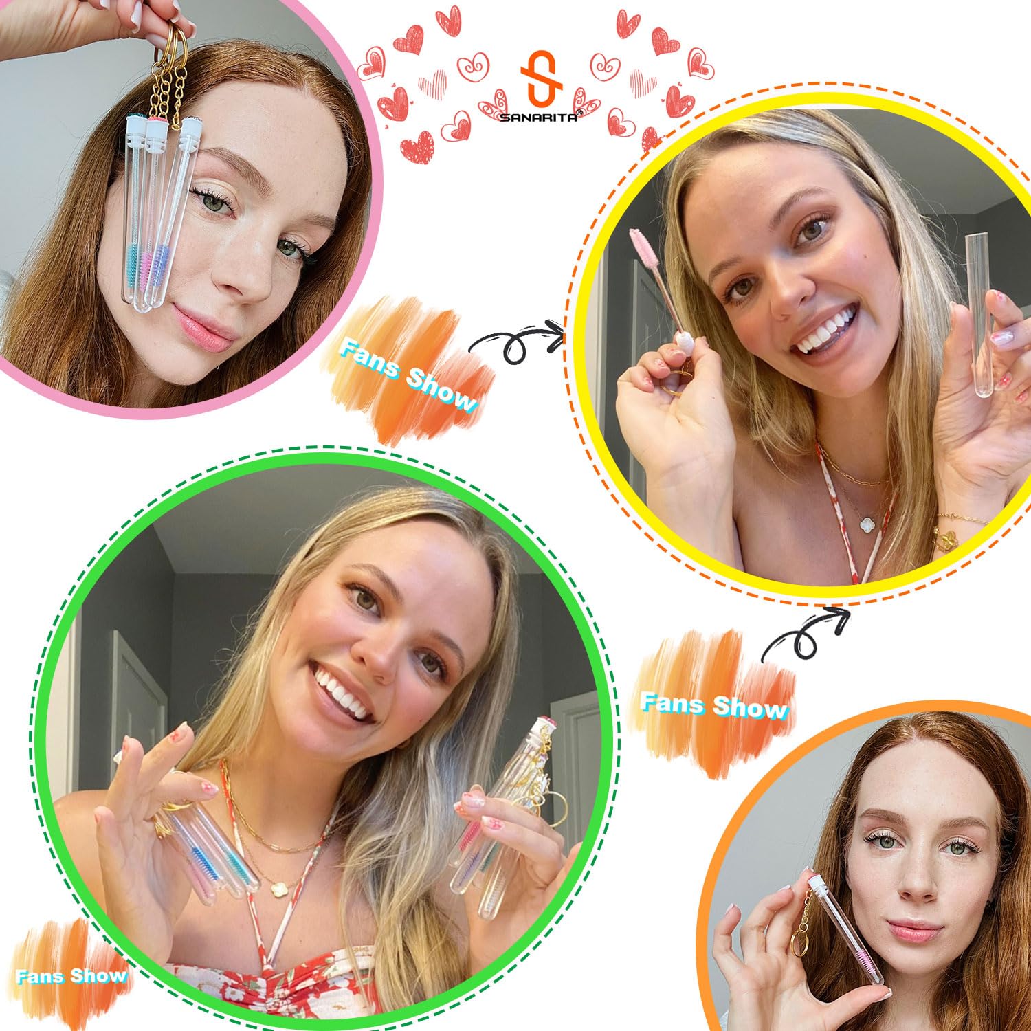 Upgrade 48 Pieces Disposable Mascara Wands Set,Include 24 Pcs Crystal Lash Spoolies Brush and 24 Pcs Reusable Keychain Empty Eyelash Brush Tubes