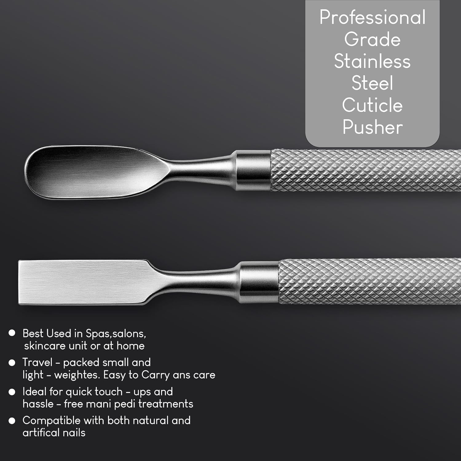 - PROFESSIONAL GRADE: Precision-crafted stainless steel cuticle nipper with integrated pusher for salon-quality nail care and maintenance