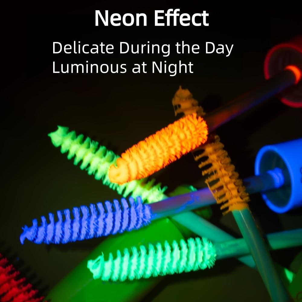 - 【Glow Mascara】Unlike most mascara, this neon mascara also reflective under UV, creating an ligh glow that's impossible to ignore.Under normal light, this mascara can be used as a colorful mascara for daily use, Can also be applied to eyelashes/eyebrows/hair.